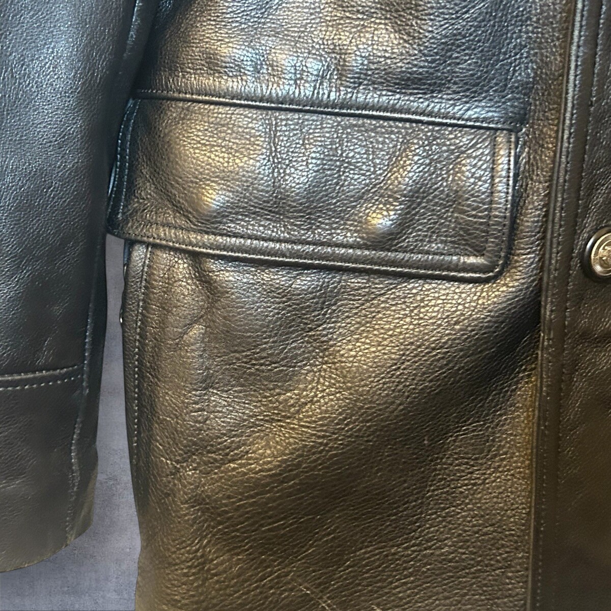 Jacket appears to be in excellent condition with just minimal wear around some of the buttons. See photos for visual inspection. Label on jacket states it?s a Medium but please refer to the photo measurements to insure this item will fit your needs.