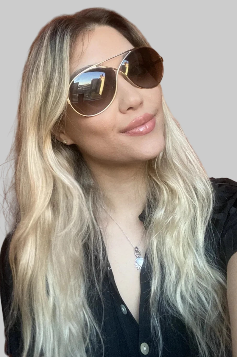 Tom Ford TF 154 28F Georgette 64mm Gold Oversized Women's Sunglasses Italy