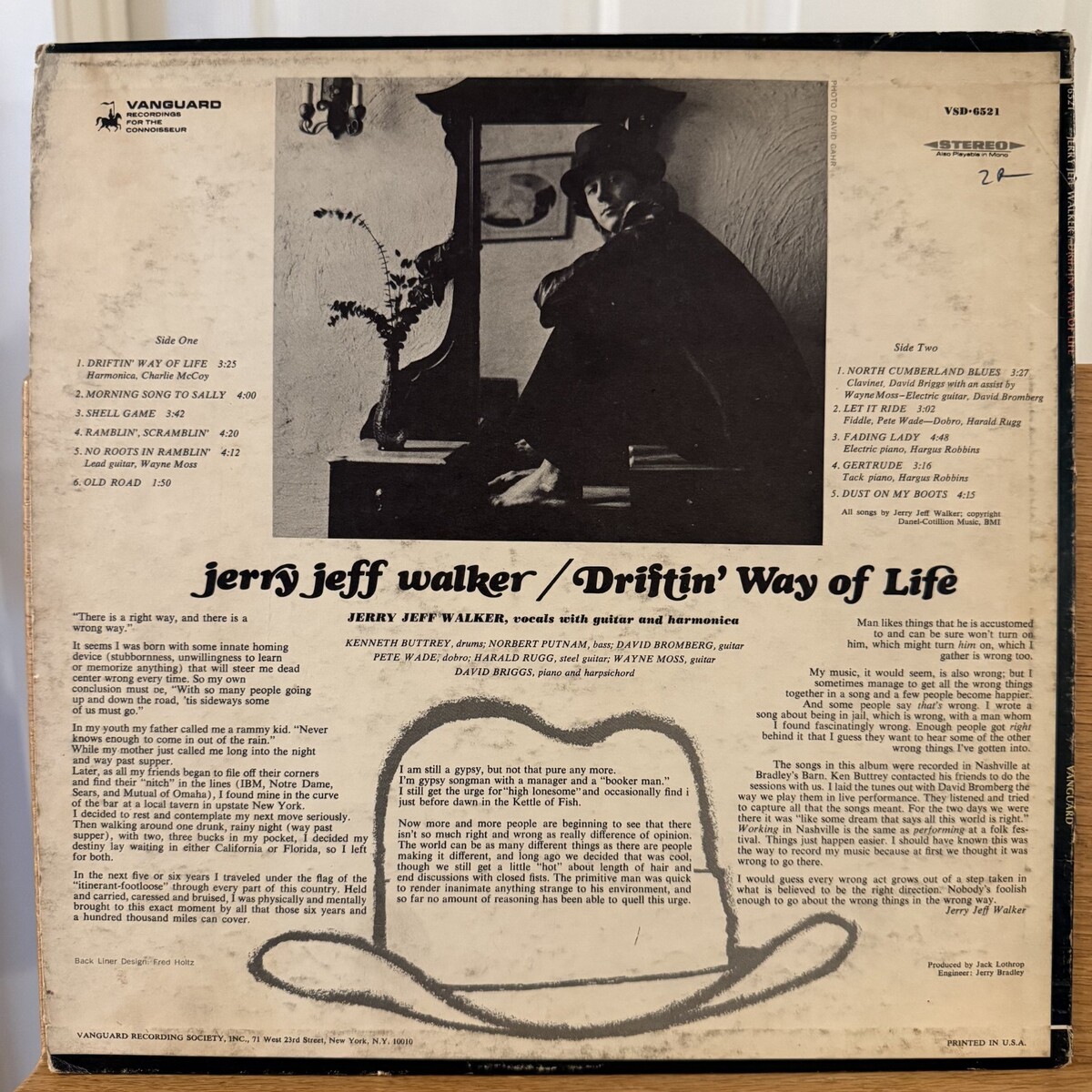 Jerry Jeff Walker Driftin' Way of Life Vinyl LP Vanguard VSD-6521 1st Pressing
