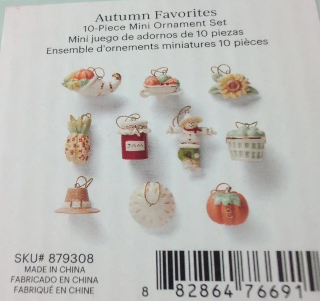 Lenox Autumn Favorites 10 PC. Mini Ornament Set Thanksgiving Fall New (No Tree)