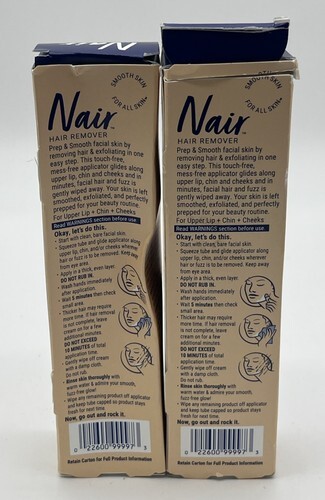 2pk Nair Prep & Smooth Face, Watermelon & Hyaluronic Acid,1.76 oz ~Damaged Boxes