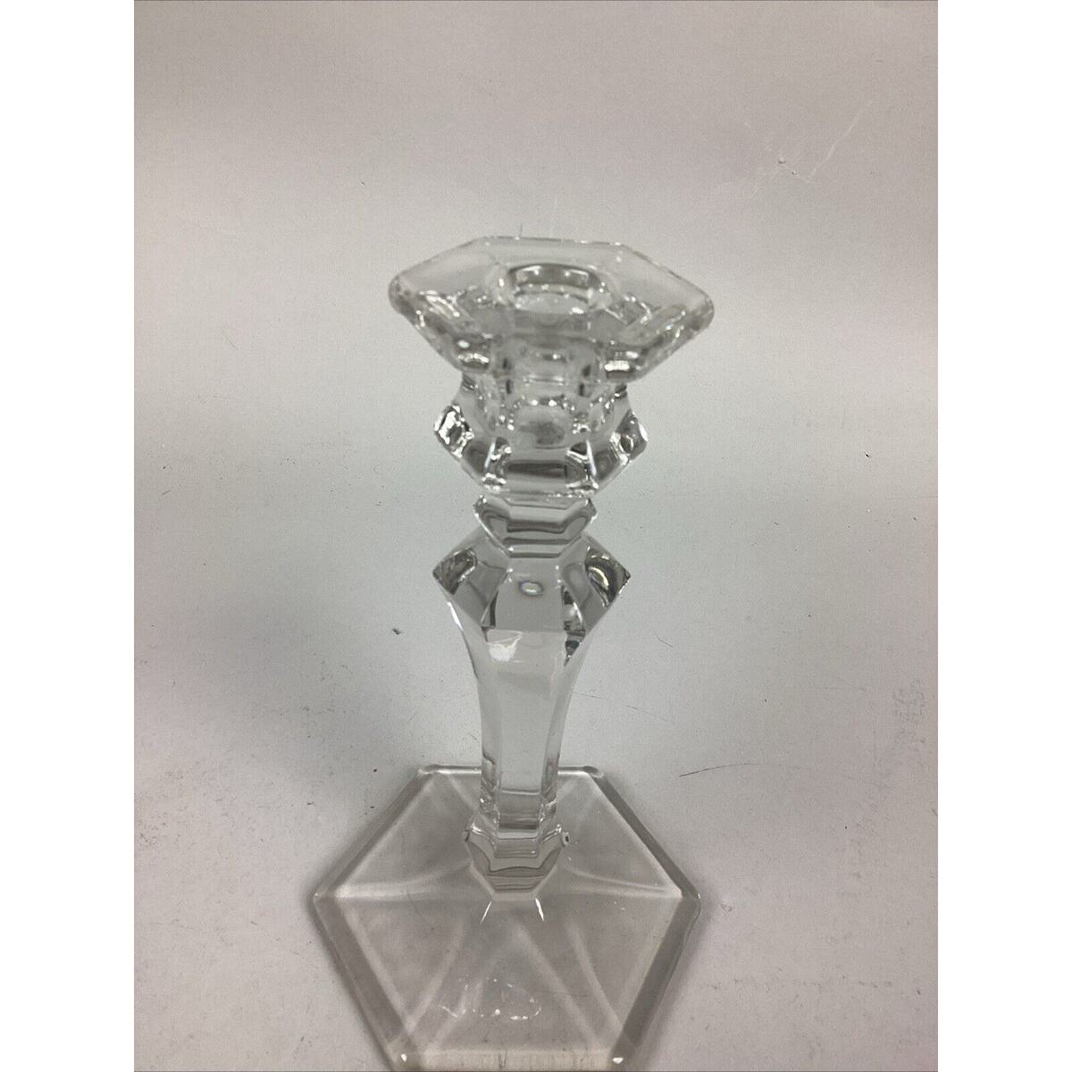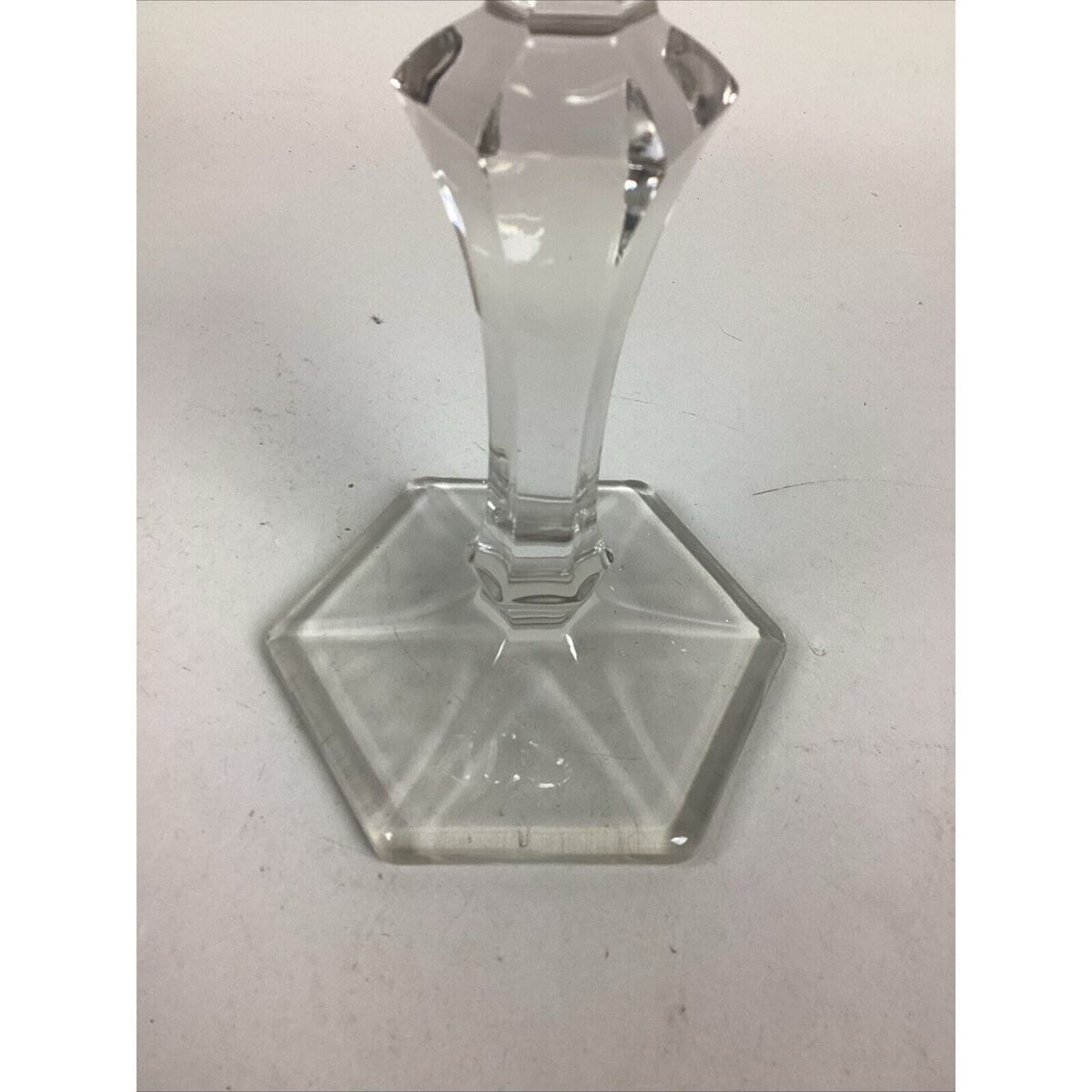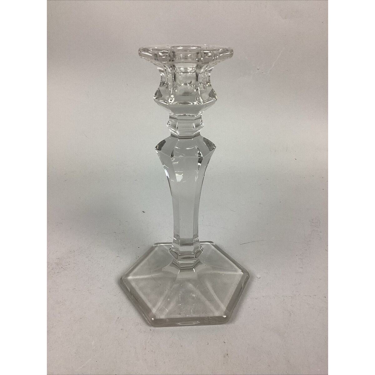 Elegant Clear Glass Candle Holder With Hexagon Base - 8”H