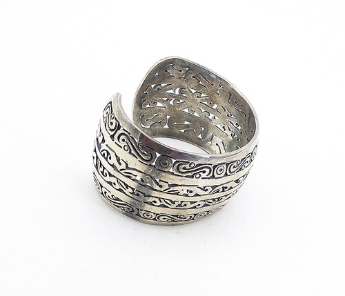 MMA MEXICO 925 Silver Vintage Dark Tone Wide Swirl Cuff Bracelet BT1958
