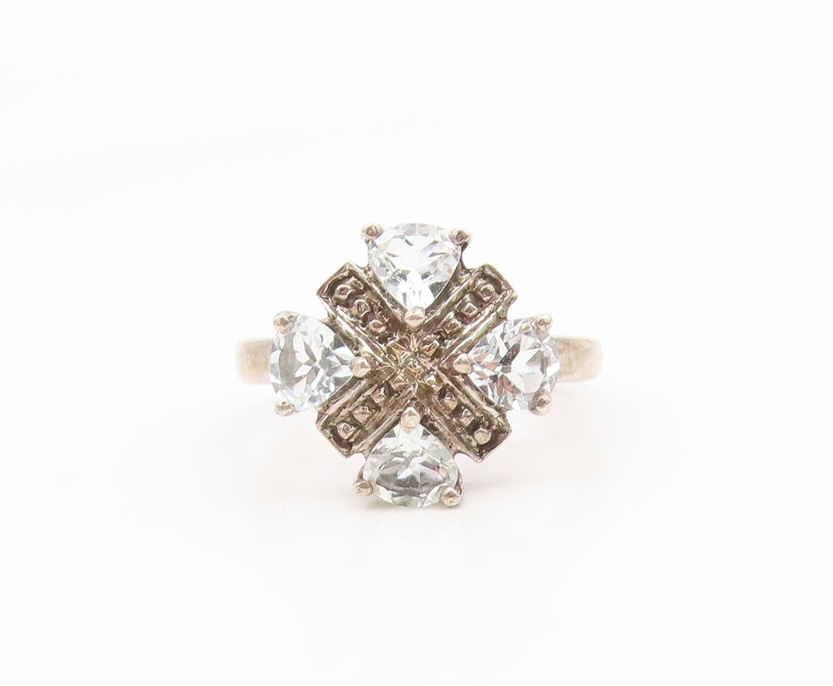 925 Sterling Silver Vintage Ring Heart Shape Topaz Floral Band Sz 7 RG35138