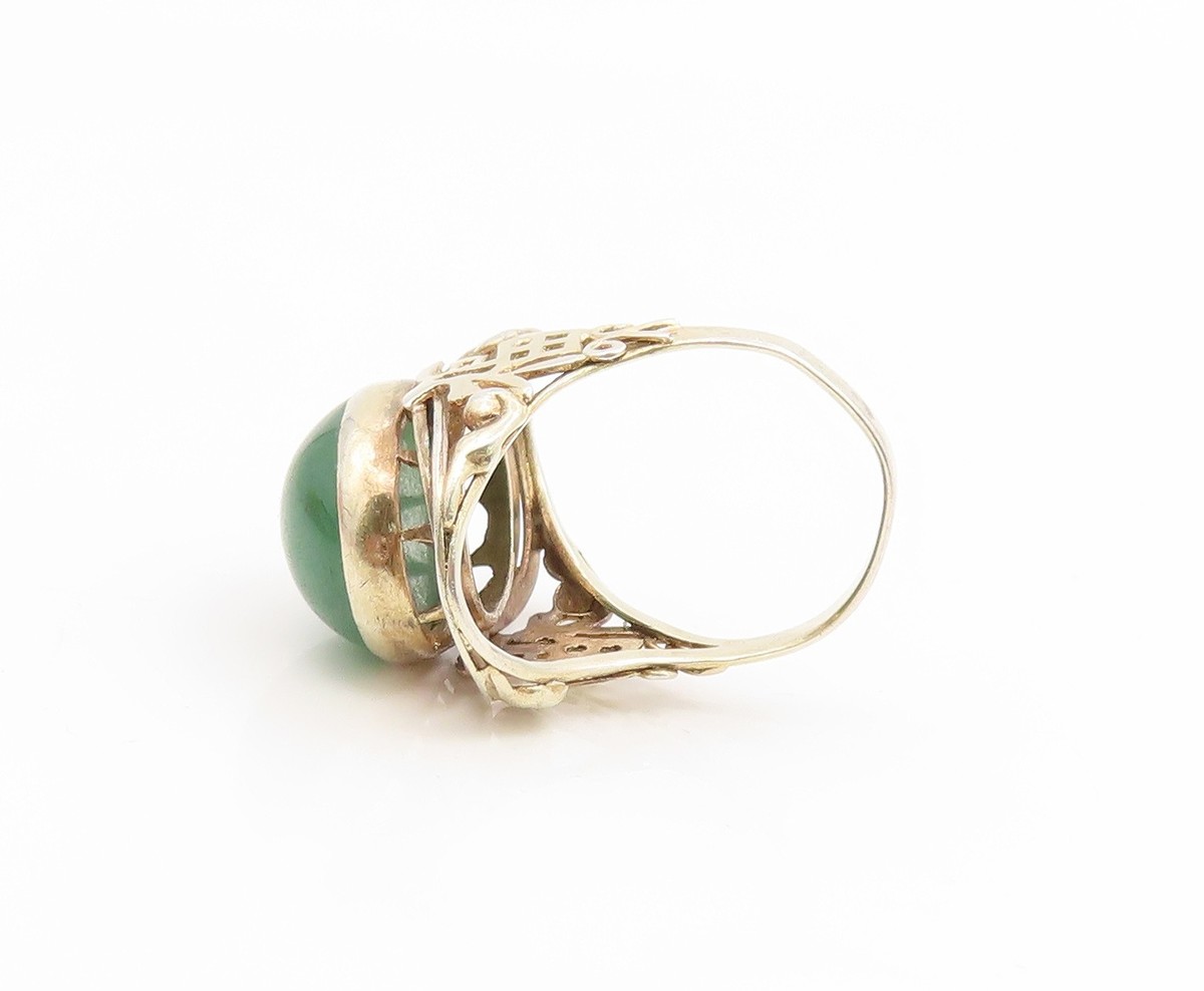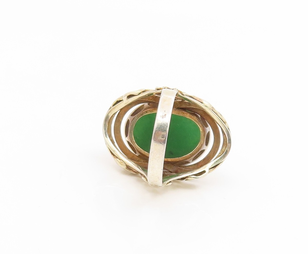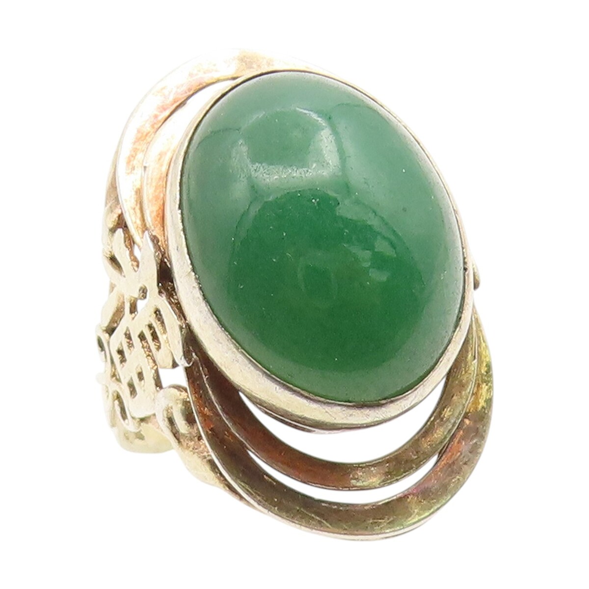 925 Sterling Silver Vintage Ring Oval Chinese Jade Longevity Band Sz 6 RG35126
