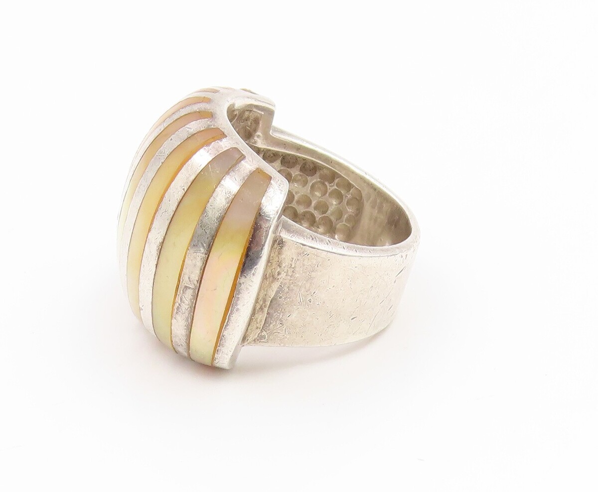 925 Sterling Silver Vintage Ring Mother Of Pearl Inlay Dome Band Sz 4.5 RG35115