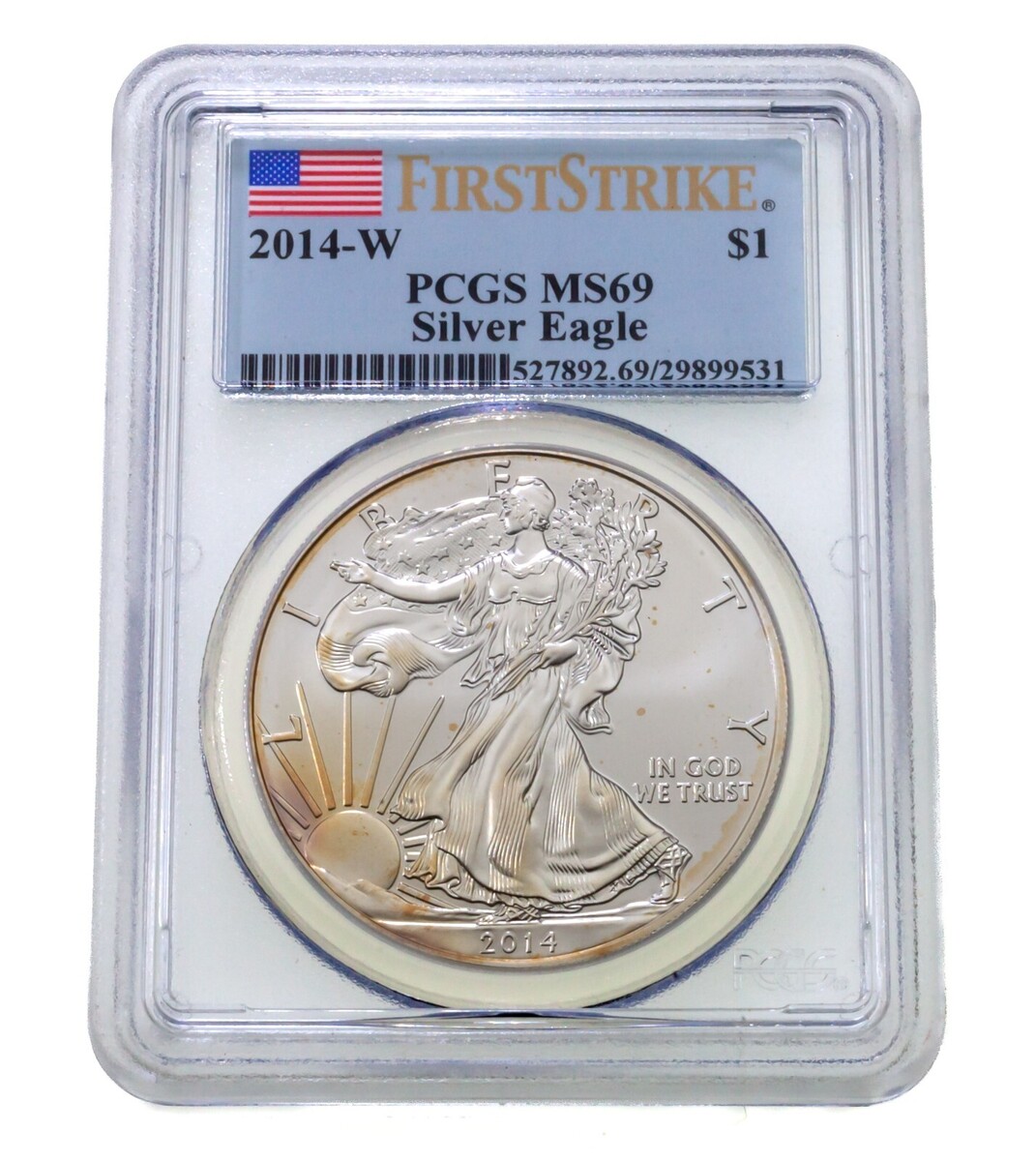 2014-W S$1 Silver American Eagle Graded by PCGS as MS69 First Strike
