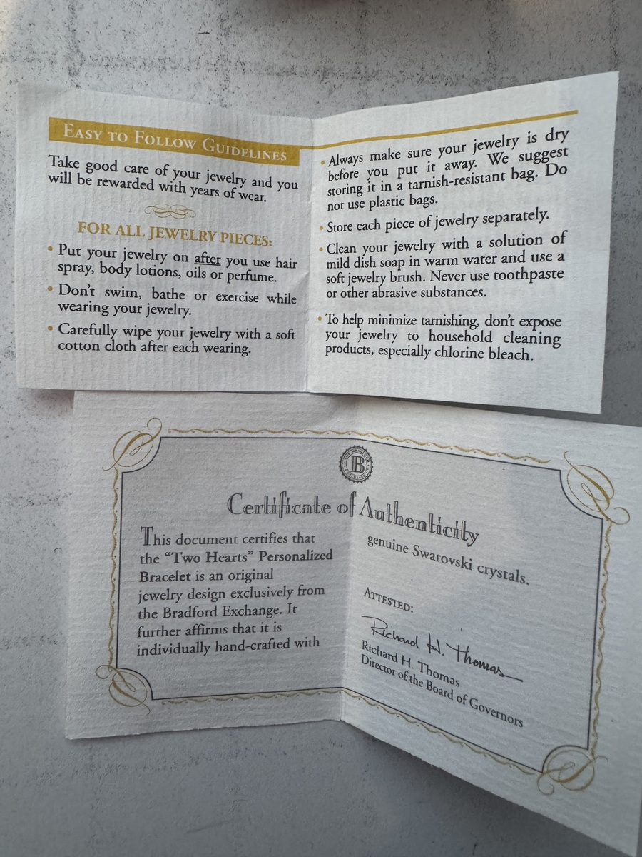 THE Bradford Exchange TWO HEARTS PERSONALIZED BRACELET WITH SWAROVSKI CRYSTAL