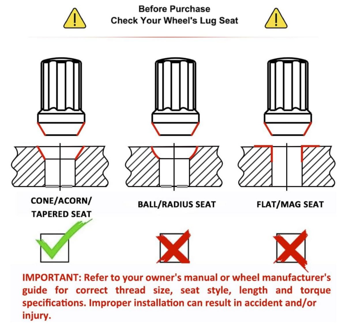 ***Check Your Wheel's Lug Nut Seat Types