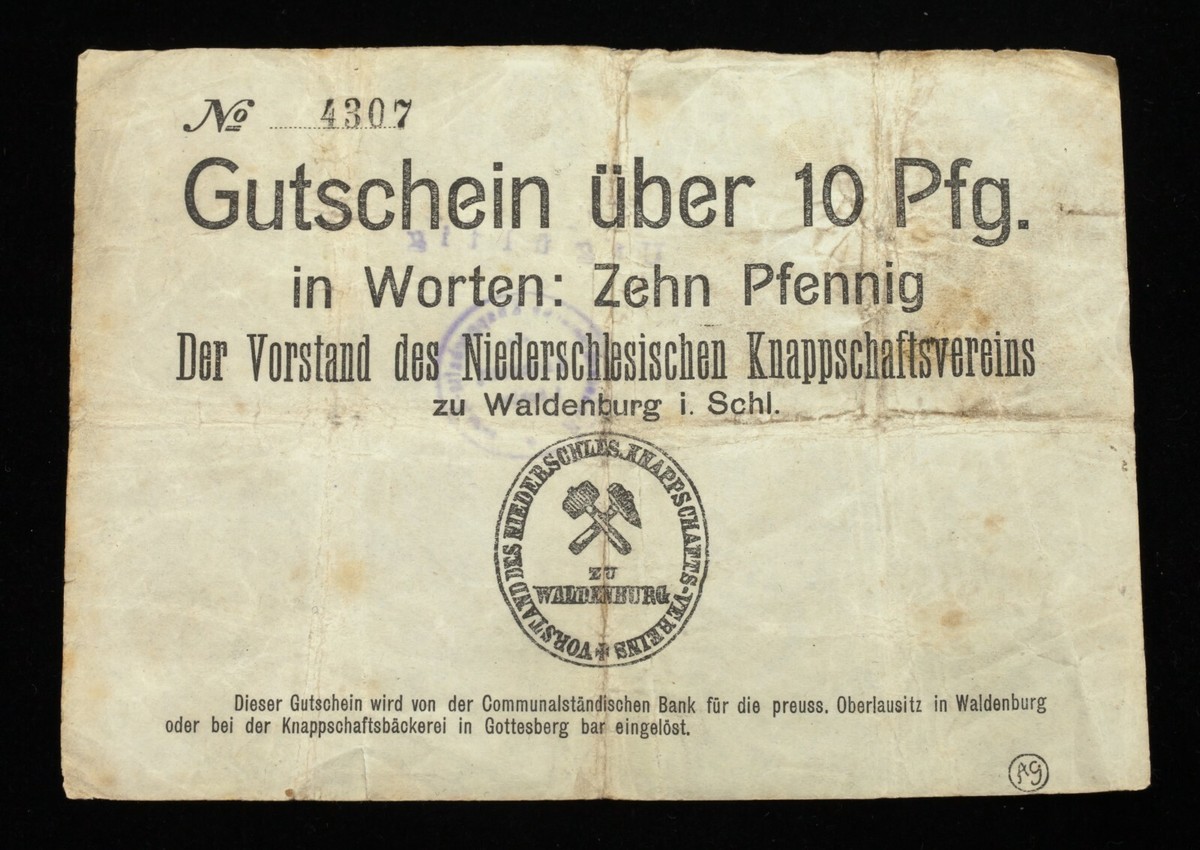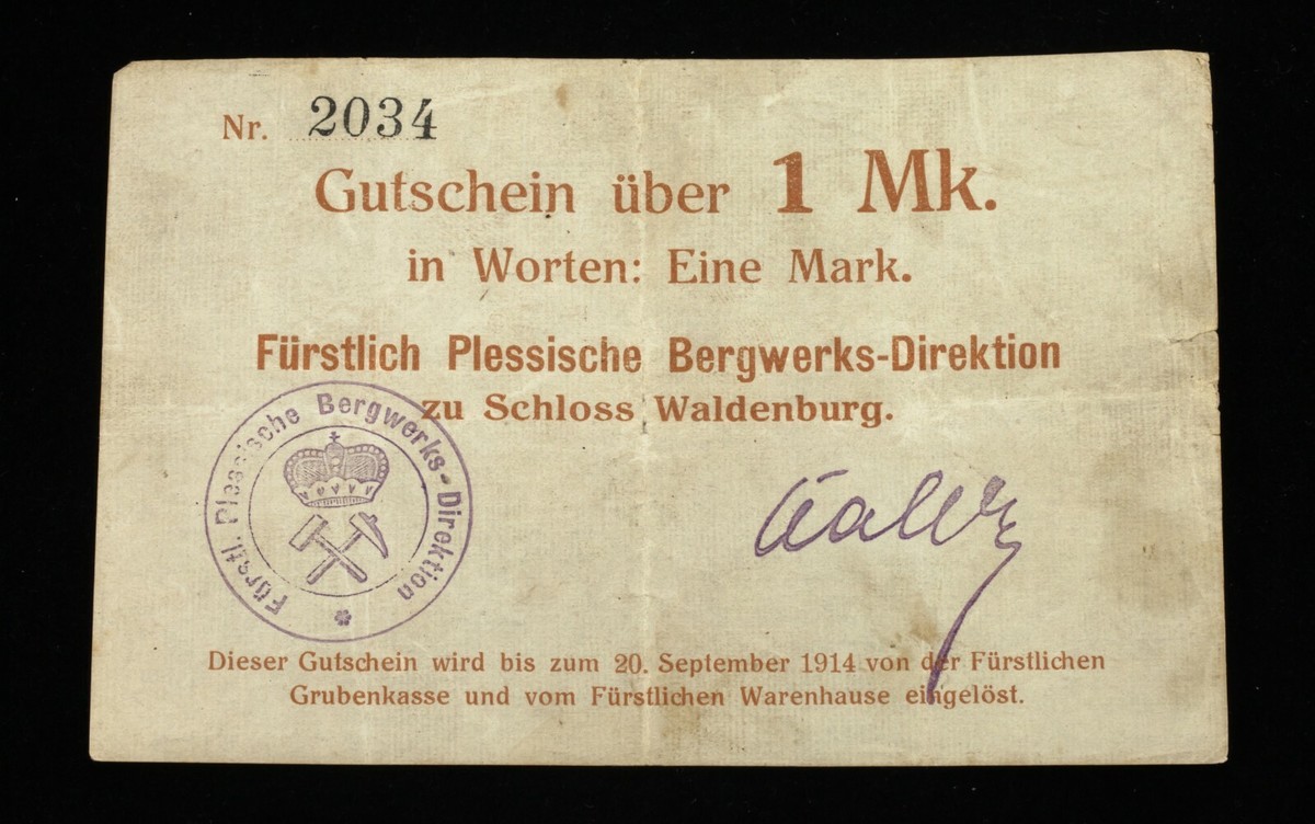 Notes (3) backed by Niederschlesischen Knappschaftsvereins at Waldenburg Castle