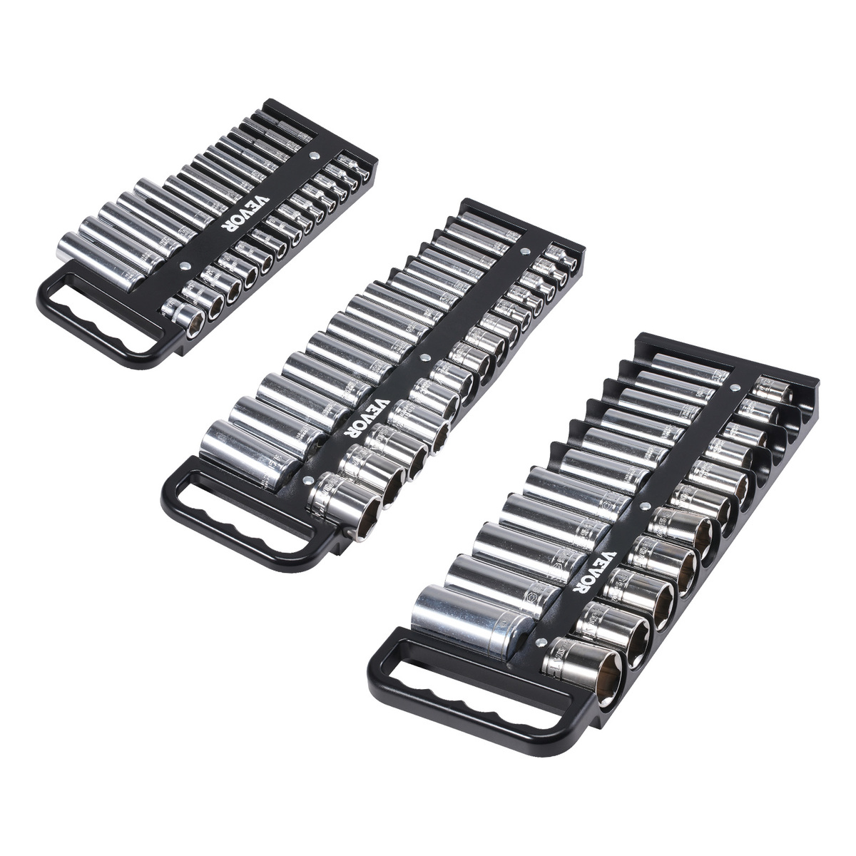 VEVOR Portable Socket Organizer Tray, 3-Piece Socket Set, Hold up to 76 Sockets