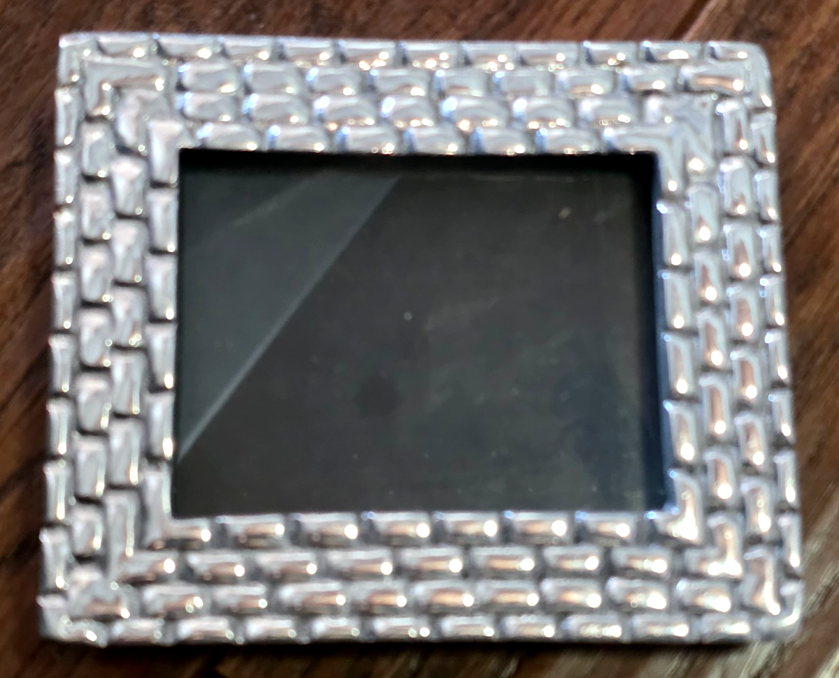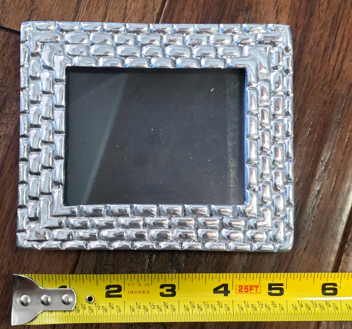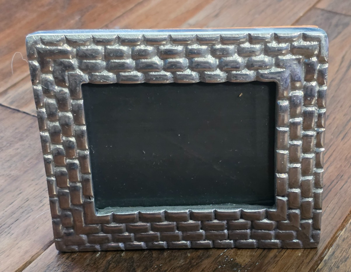 Small Rectangular Mexican Handmade Pewter Picture Frame w/Wood Back Stand