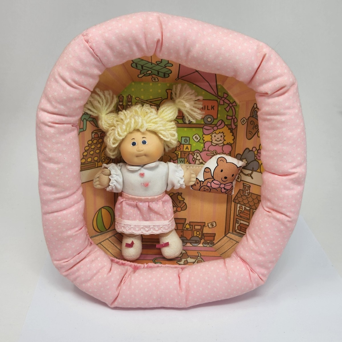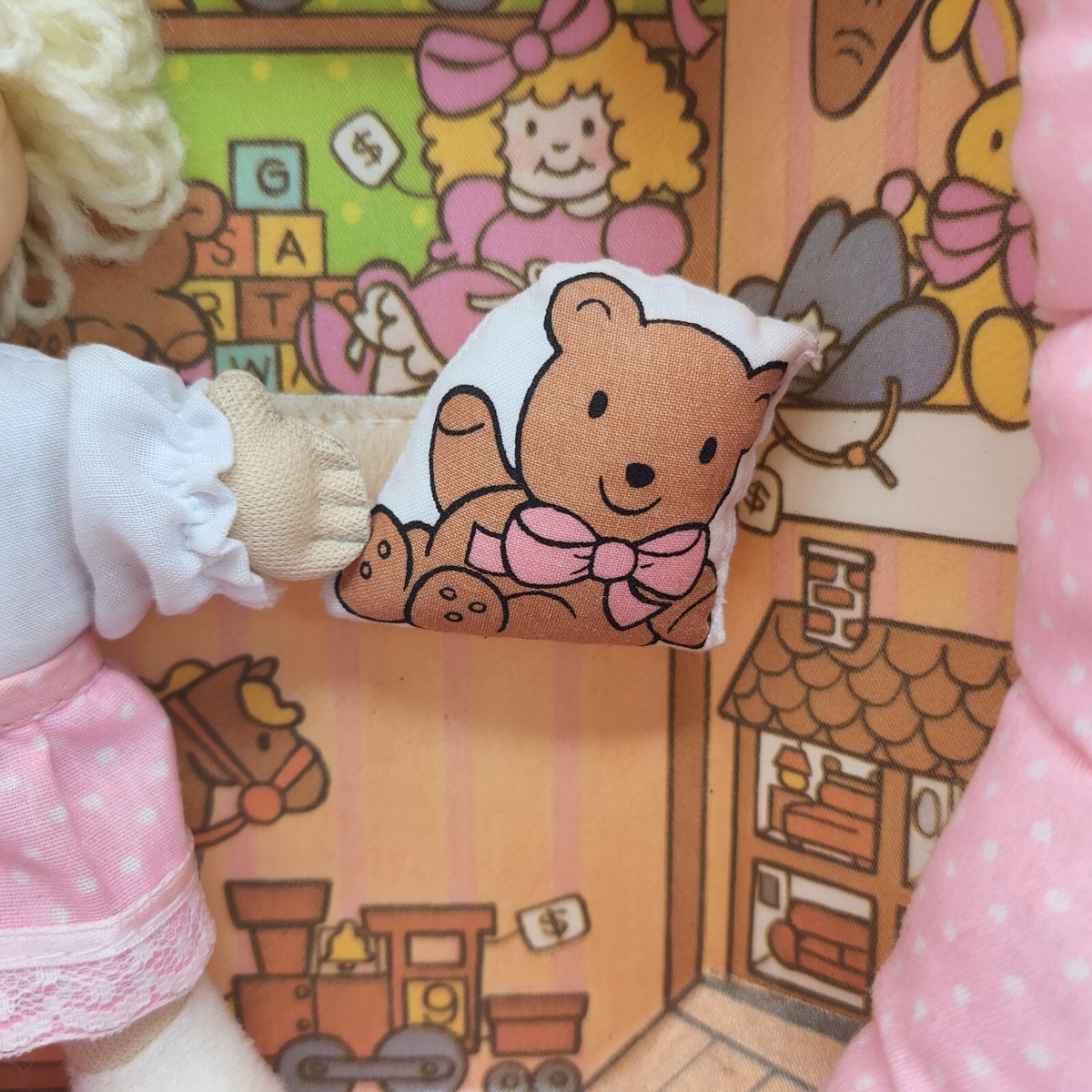 VINTAGE 1983 COLECO CABBAGE PATCH PIN-UPS MINI BLONDE GIRL DOLL TOY STORE W BEAR
