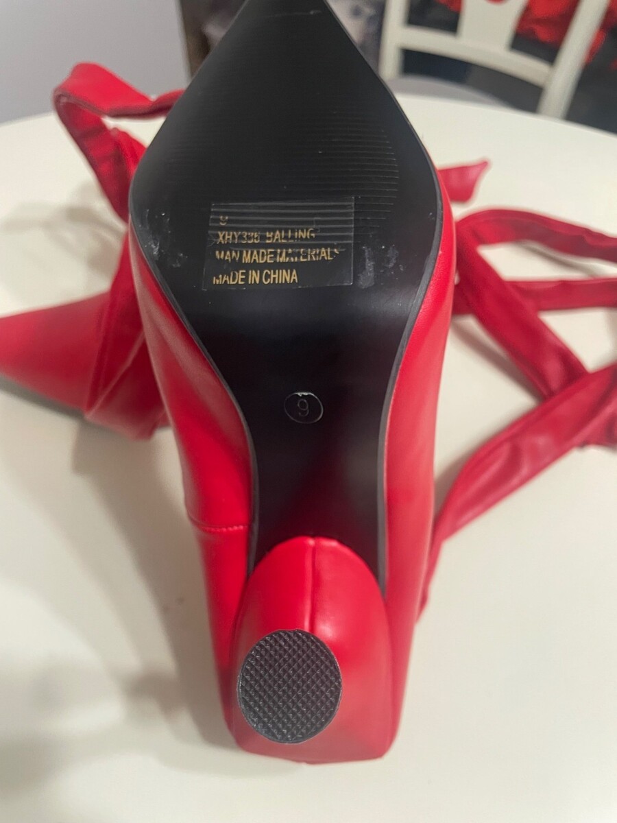 Lemonade Women’s Red Pointed Toe Ankle Wrap Lace-Up Stiletto Heels Size 9