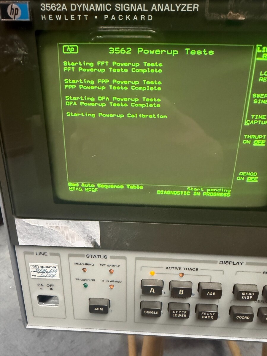 HP 3562A Dynamic Signal Analyzer Powers On Passes Self Tests See Notes