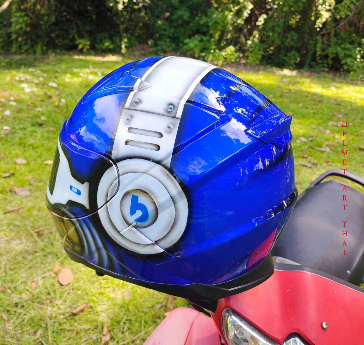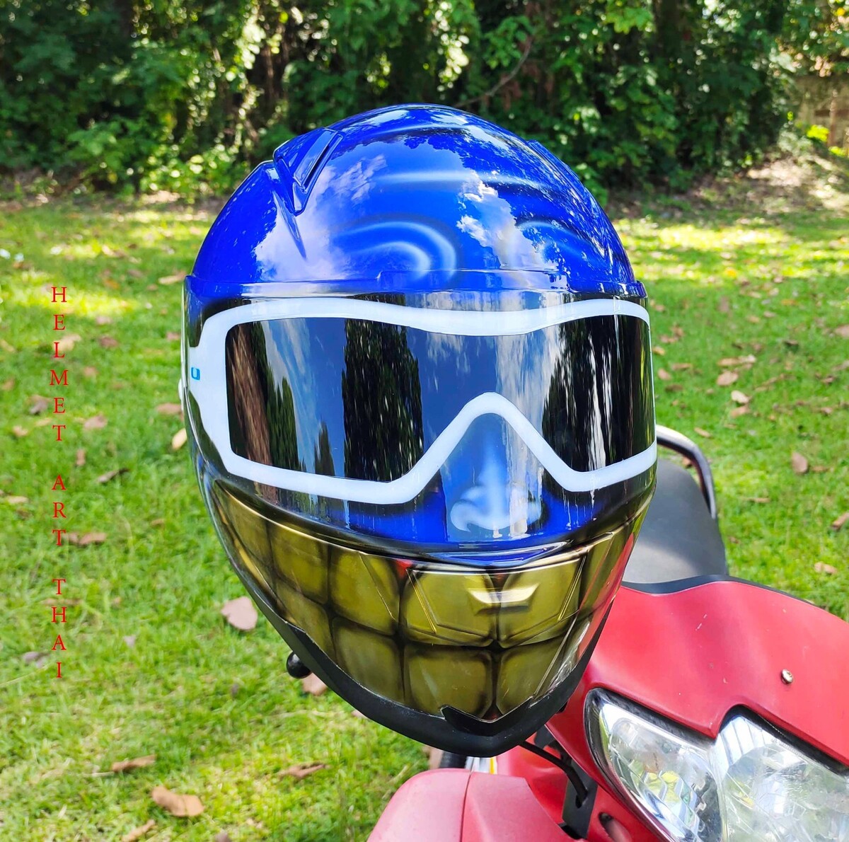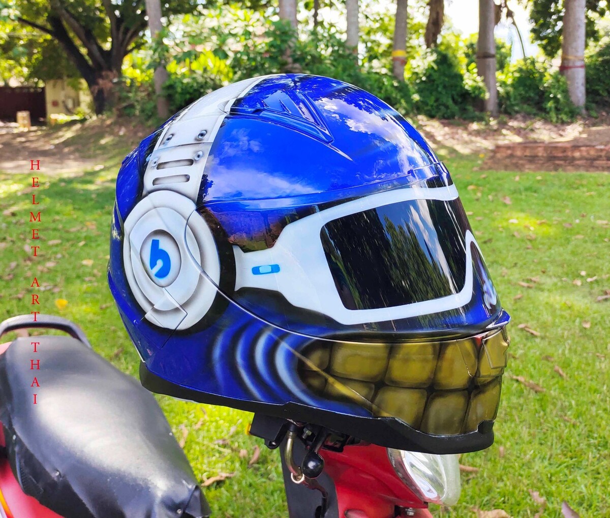 BLAUER CUSTOM SMILEY GESICHT MOTORRADHELM