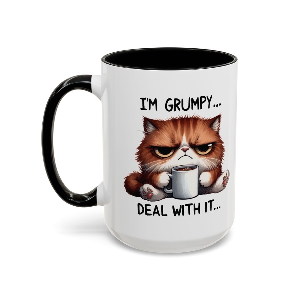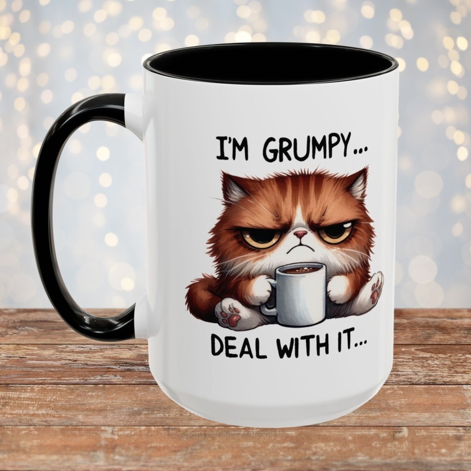 I'M GRUMPY... DEAL WITH IT. Cat Funny Mug Gift Coffee Cup Coffee Mug (11, 15oz)