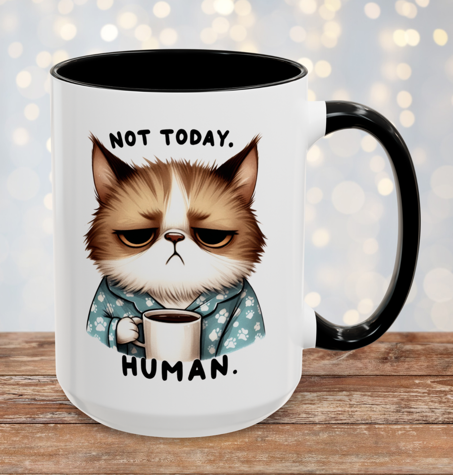 NOT TODAY HUMAN Cat Funny Sarcastic Mug Gift Coffee Cup Coffee Mug 11- 15oz