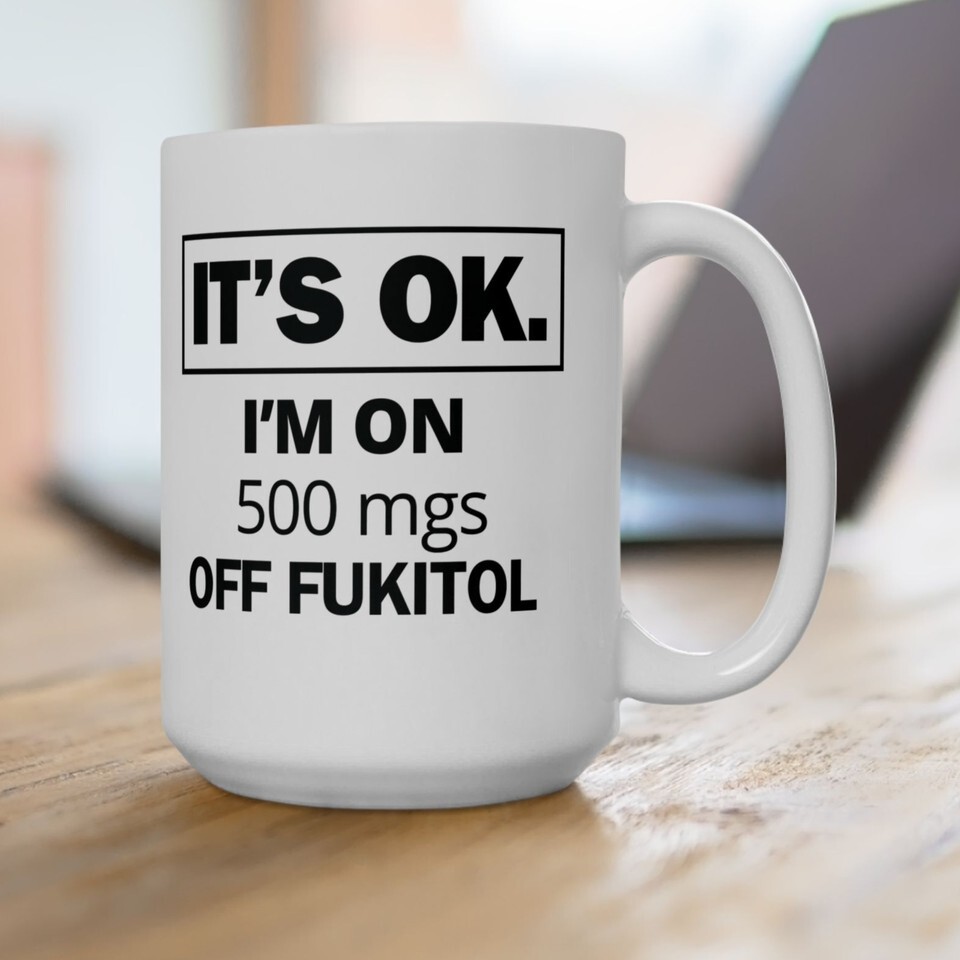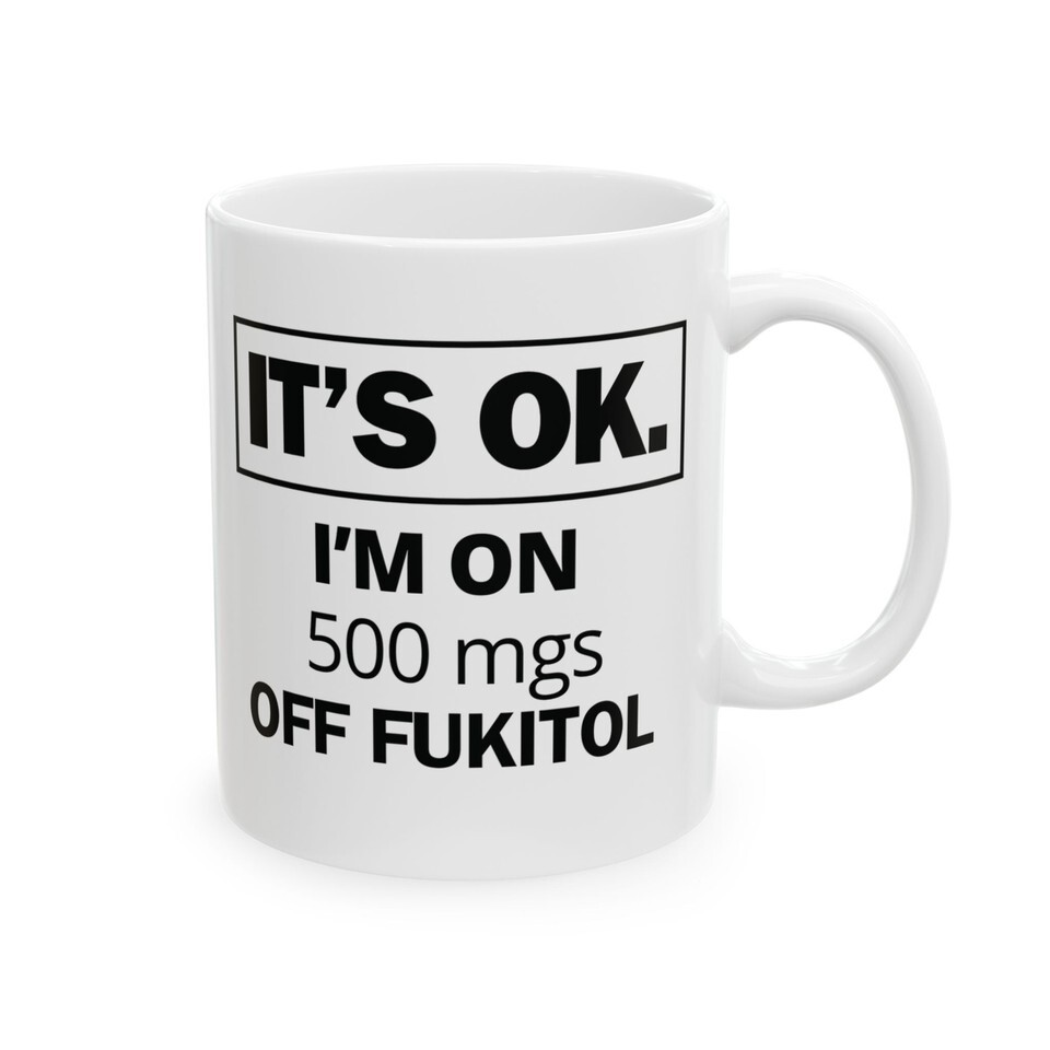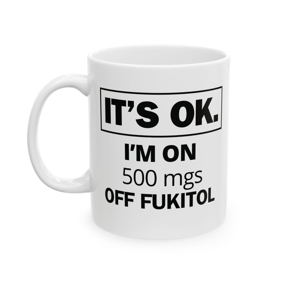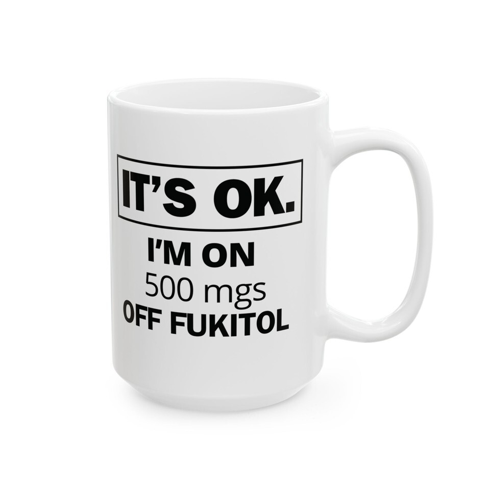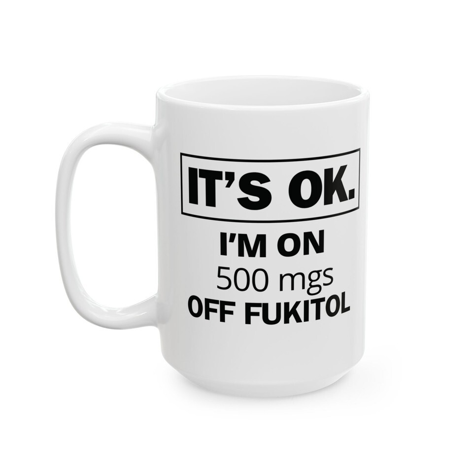 Sarcastic It's OK I'm On 500 mgs Off Fukitol Mug Gift Funny Quote Coffee Cup (11, 15oz)