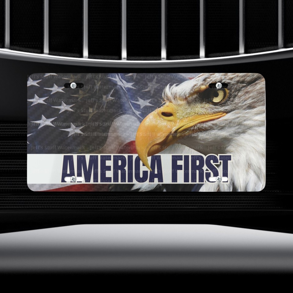 America First Eagle Flag Aluminum License Plate Tag ? Vanity Car Plate for Auto