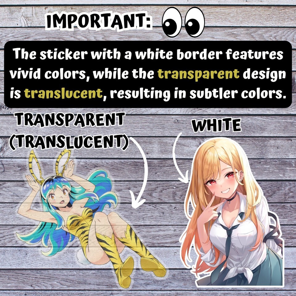 The white border presents vivid colors, while the transparent design is translucent, the colors are more subdued. In smaller designs, some details may be lost.
