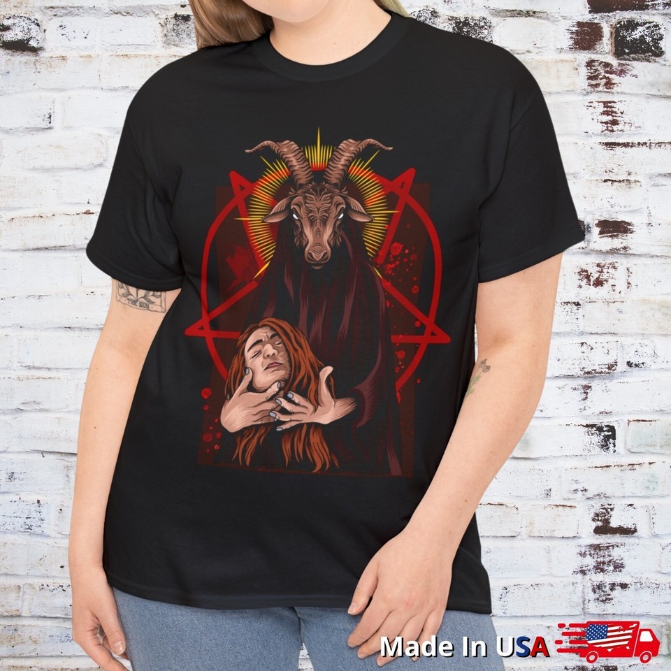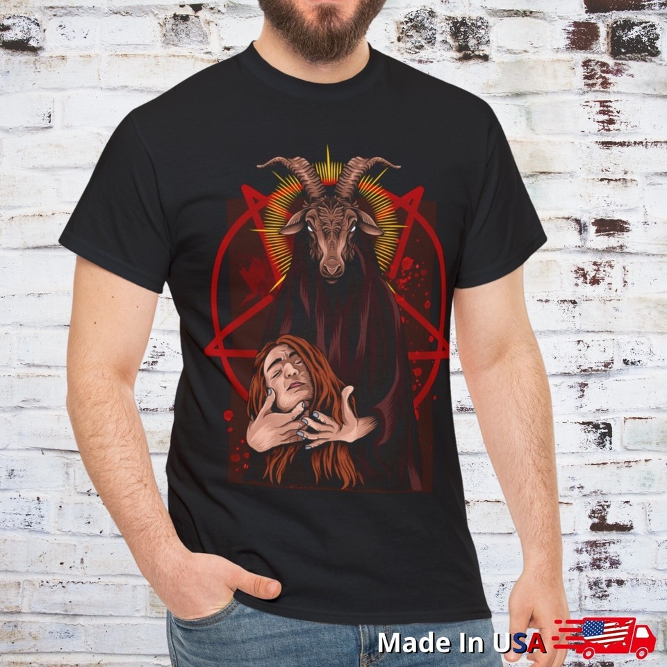 Satanic Pentagram Baphomet With Head T Shirt Ritual Goth Occult Gothic Clothing