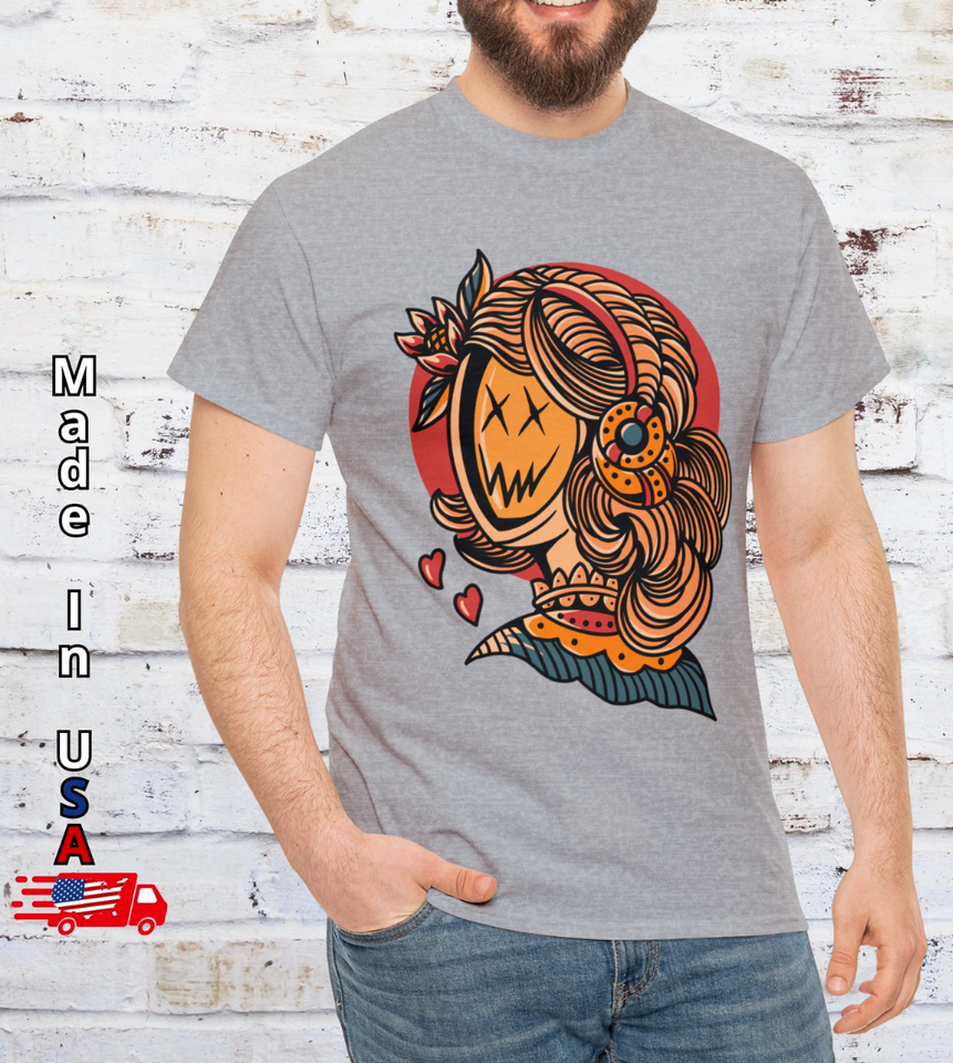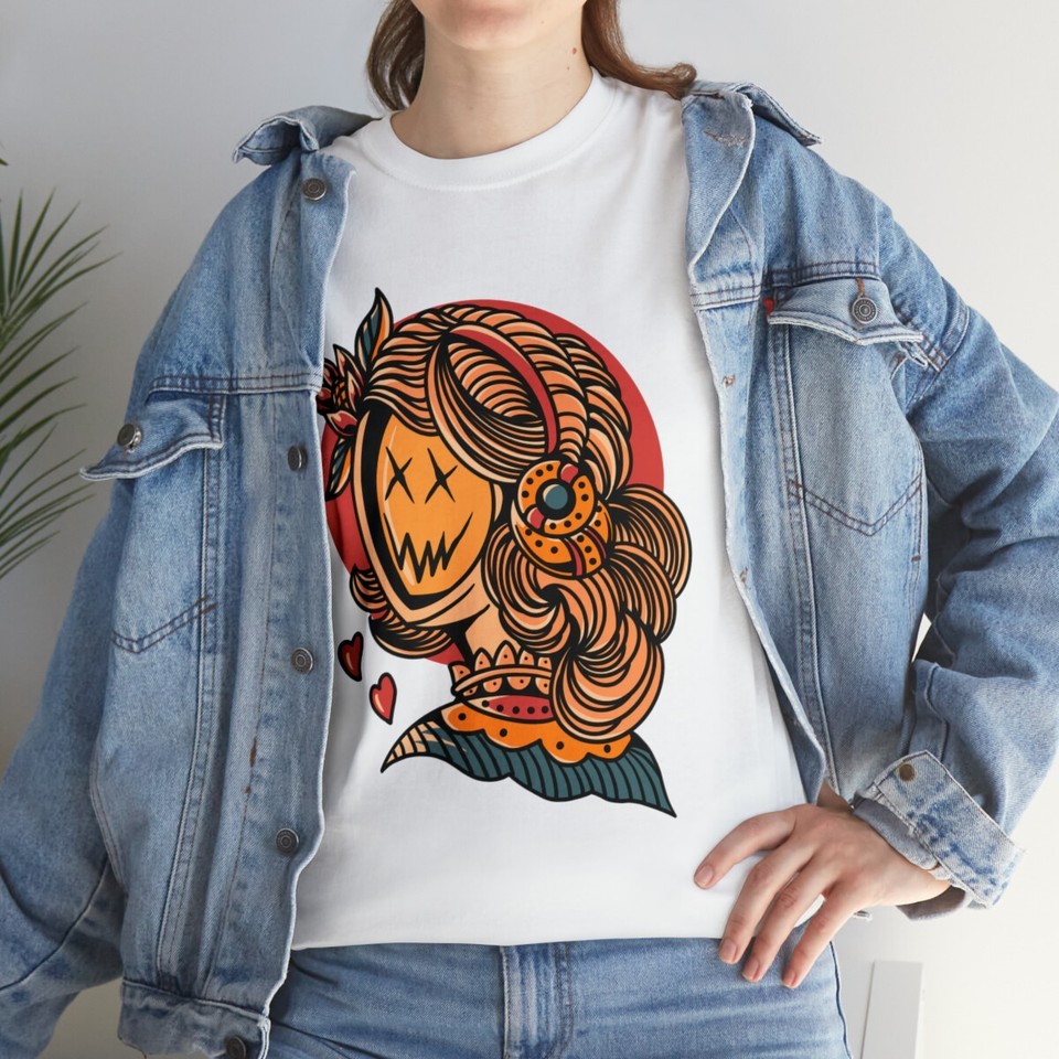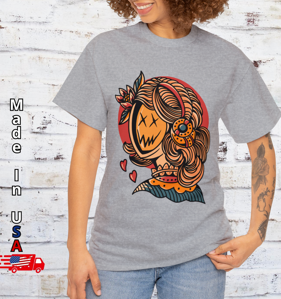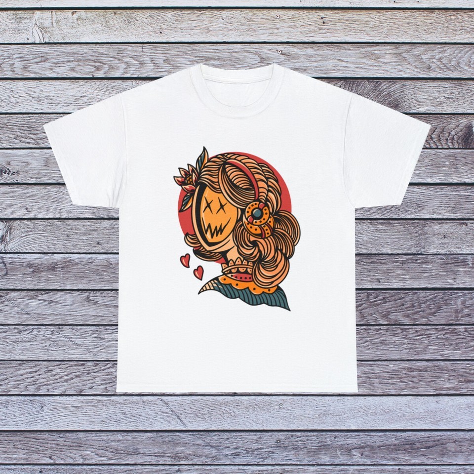 Vintage Old School Smiling Girl T Shirt, Creepy Gamer Street Tattoo Clothing