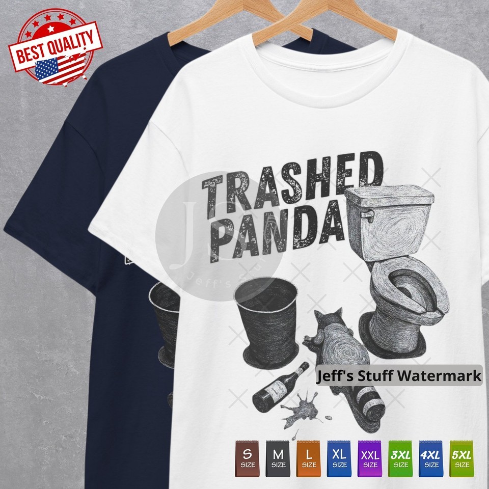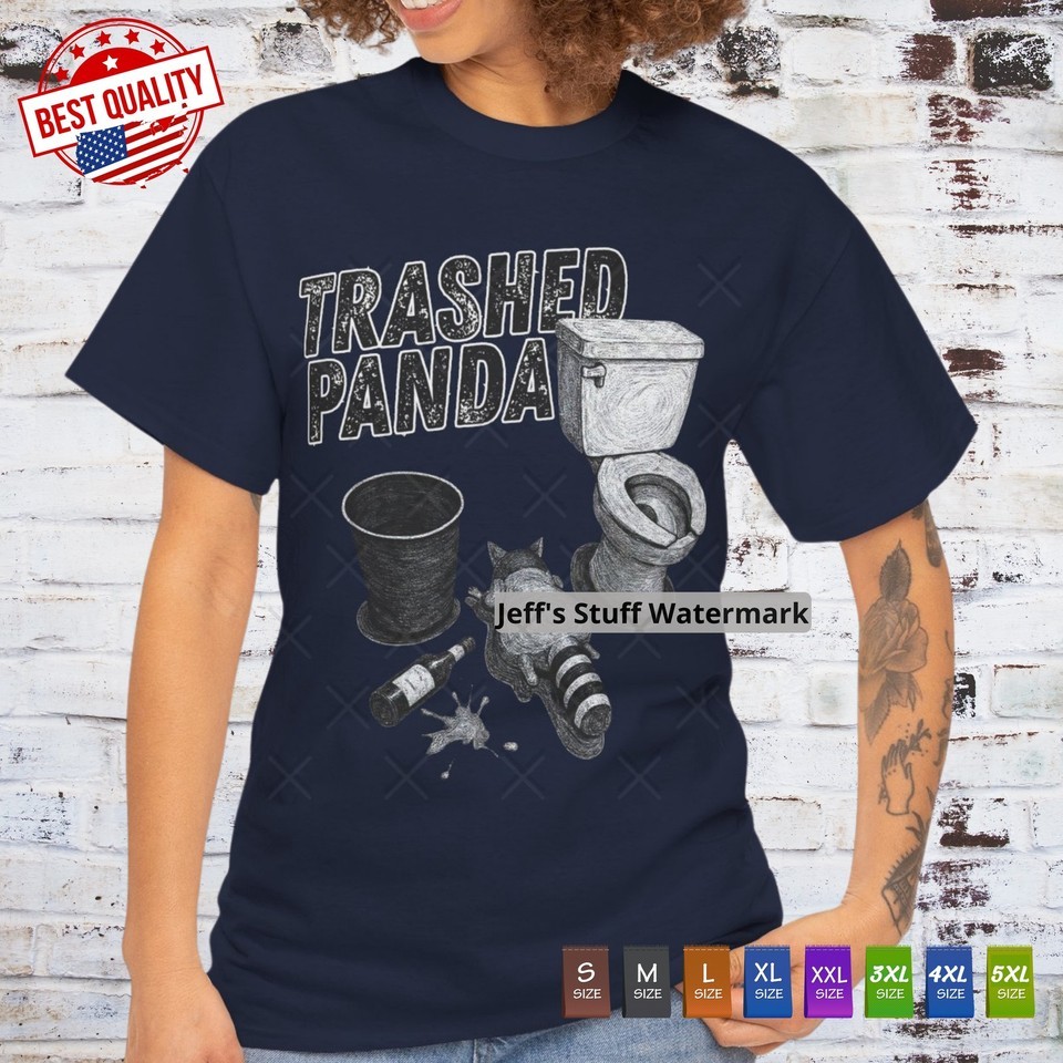 Trashed Panda T Shirt Tee Funny Raccoon Lover Graphic Top Novelty Drunk Humor