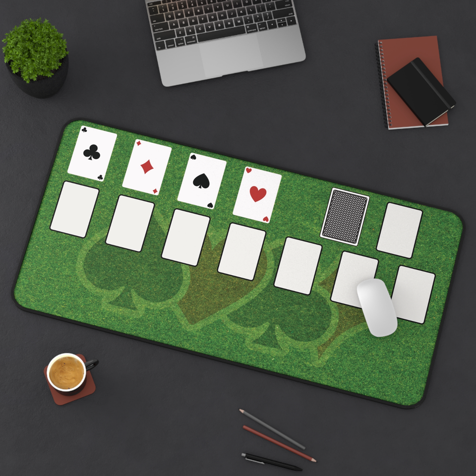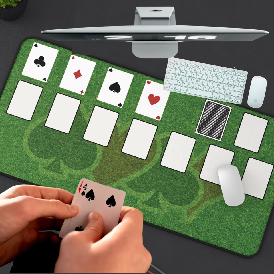 Klondike Solitaire Desk Mat Large Classic Card Game Keyboard Laptop Mouse Pad