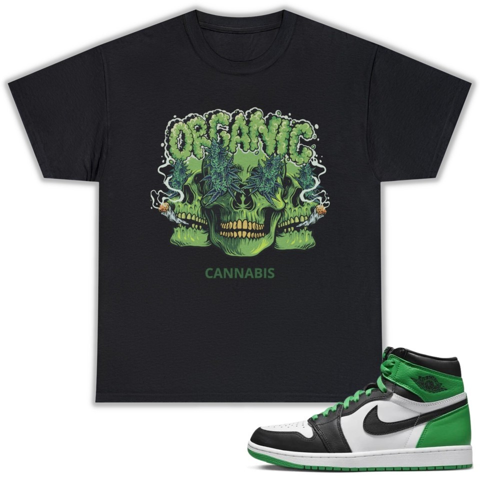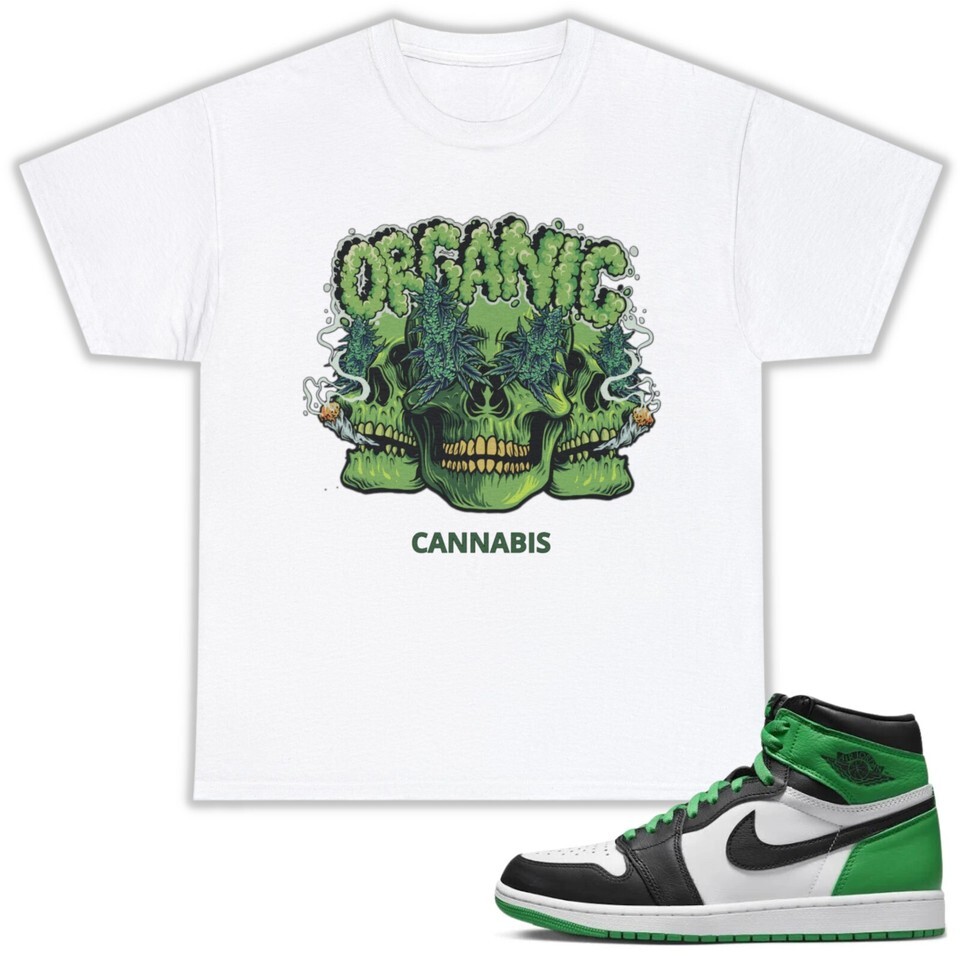 Organic Unisex T-shirt to Match Jordan 1 Lucky Green Vintage Skull Weed 4:20