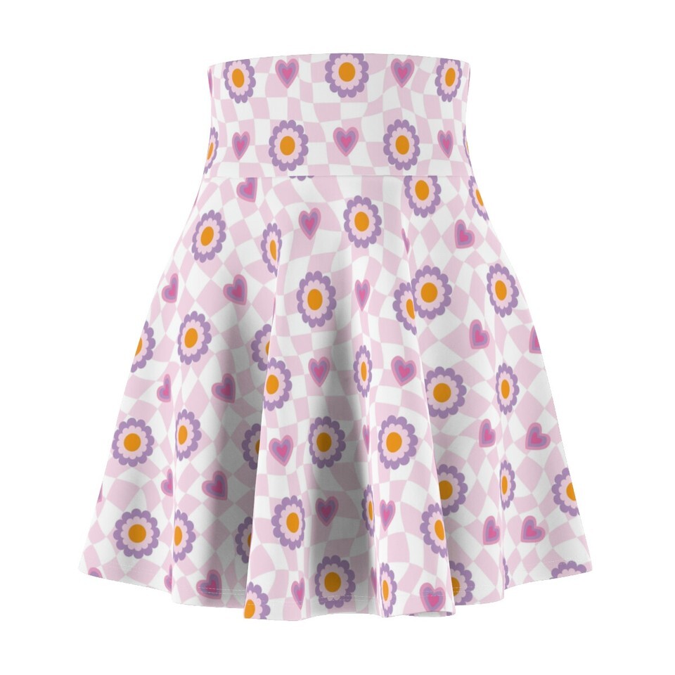 Flowers and Hearts Skater Skirt Cute Pattern Square