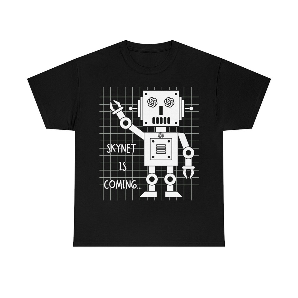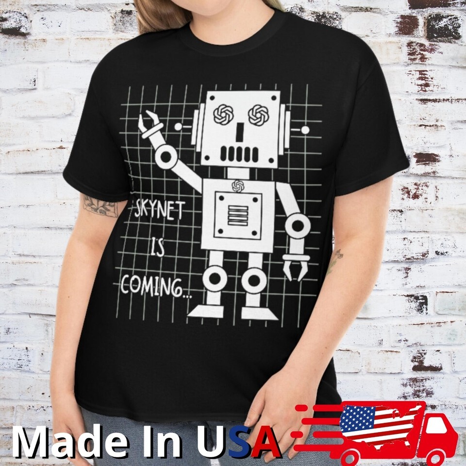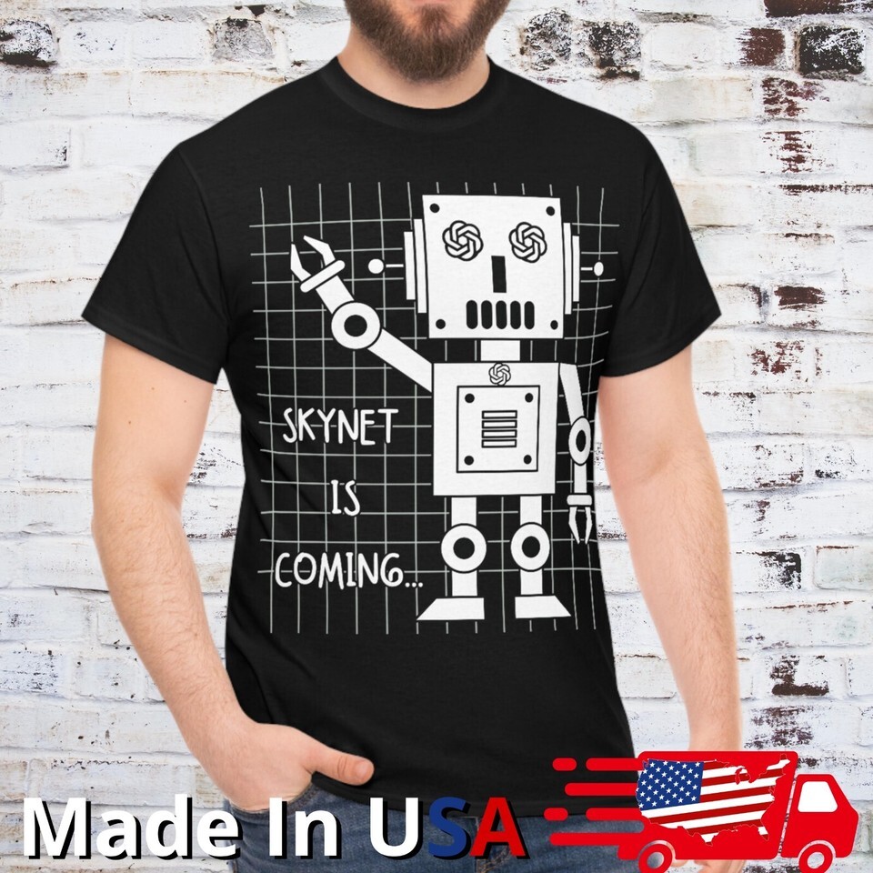 Are you ready for the rise of the machines? Skynet (GPT chat, BARD) is coming, and we can't stop it. Show your appreciation for the inevitable with this stylish futuristic design t-shirt. Perfect for sci-fi fans, tech enthusiasts, or anyone who thinks the robot apocalypse might not be so bad after all. Get yours today and join the revolution.