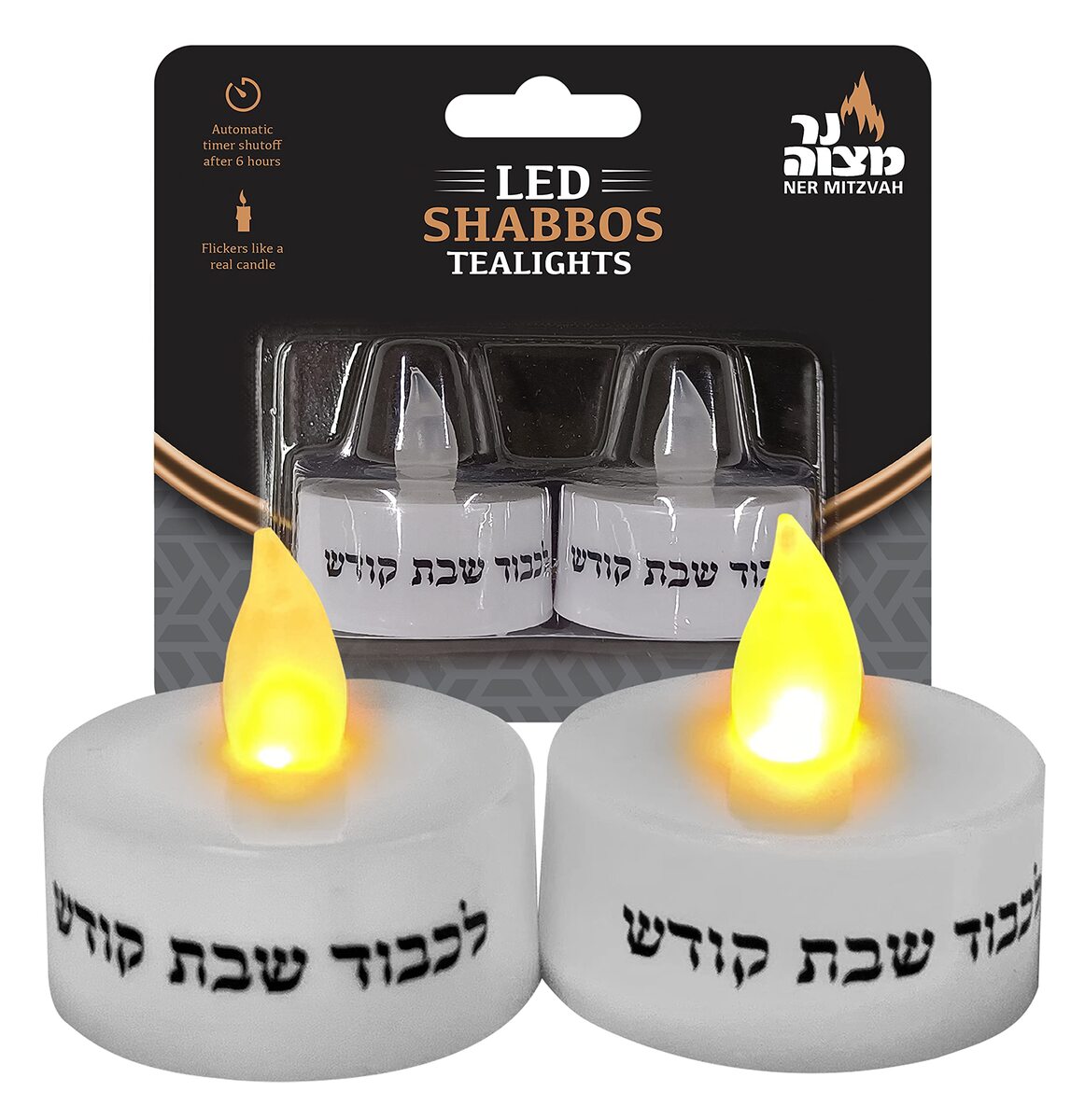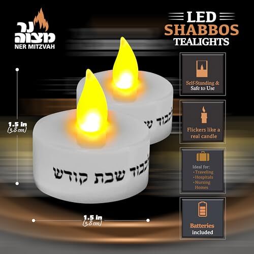 Ner Mitzvah LED Shabbat Candles - Battery Operated Flameless Tealight Candles wi