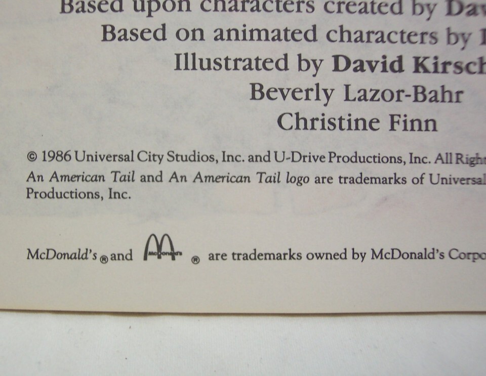 VINTAGE 1986 AN AMERICAN TAIL Fievel and Tiger Children's Book Mcdonald's