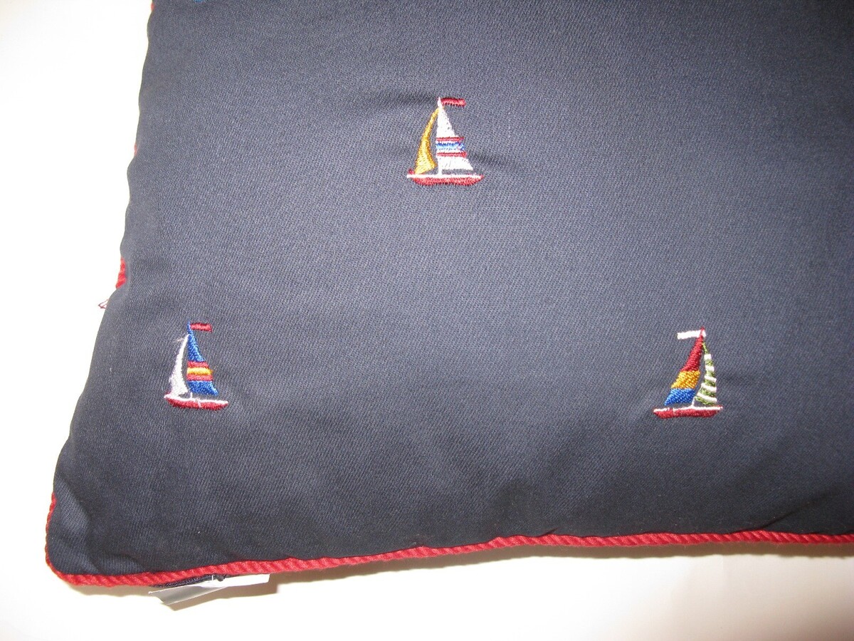 Ralph Lauren Embroidered Sailboats Nautical Large Down Feather Deco Pillow