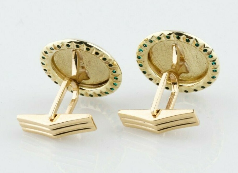 Lucien Piccard 14k Yellow Gold Tsavorite Garnet Cufflinks Nice!