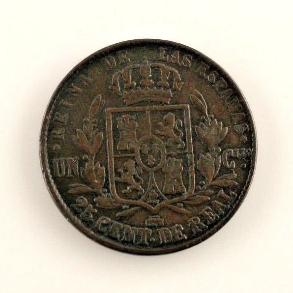 1858 Spain 25 Centimo (VF+) very Fine Plus Condition