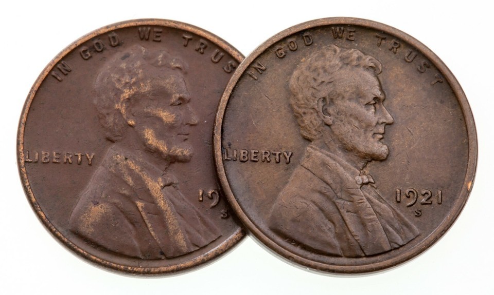 1921-S and 1924-S Lincoln Cent Lot, XF Condition, All Brown Color, Strong Detail