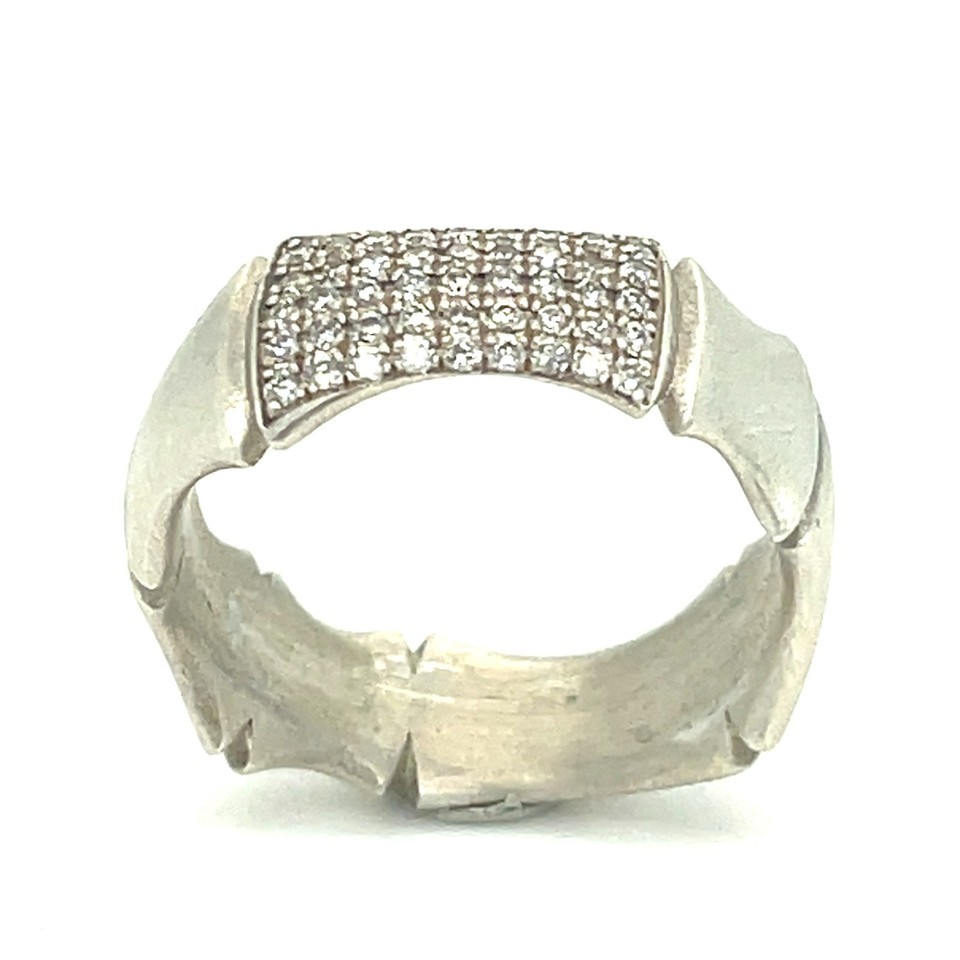 Sterling Silver 18k White Vermeil Bamboo 8mm Ring w/ 0.45 TCW Diamond Accents Sz 6