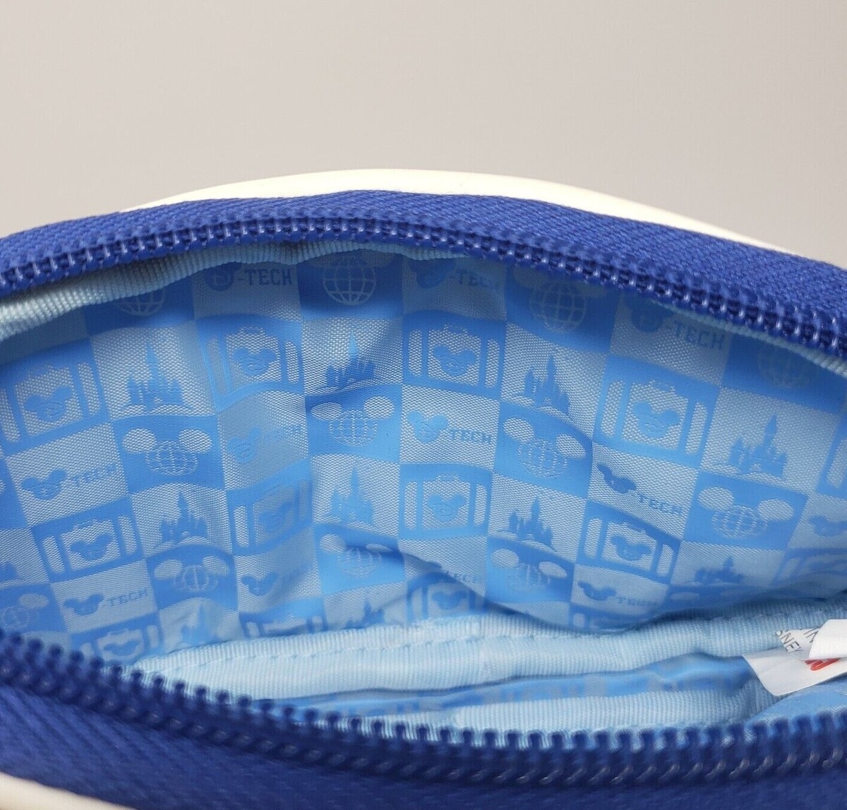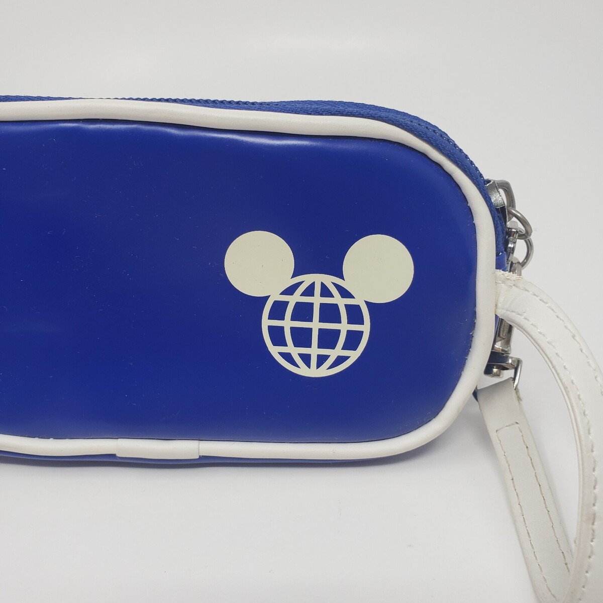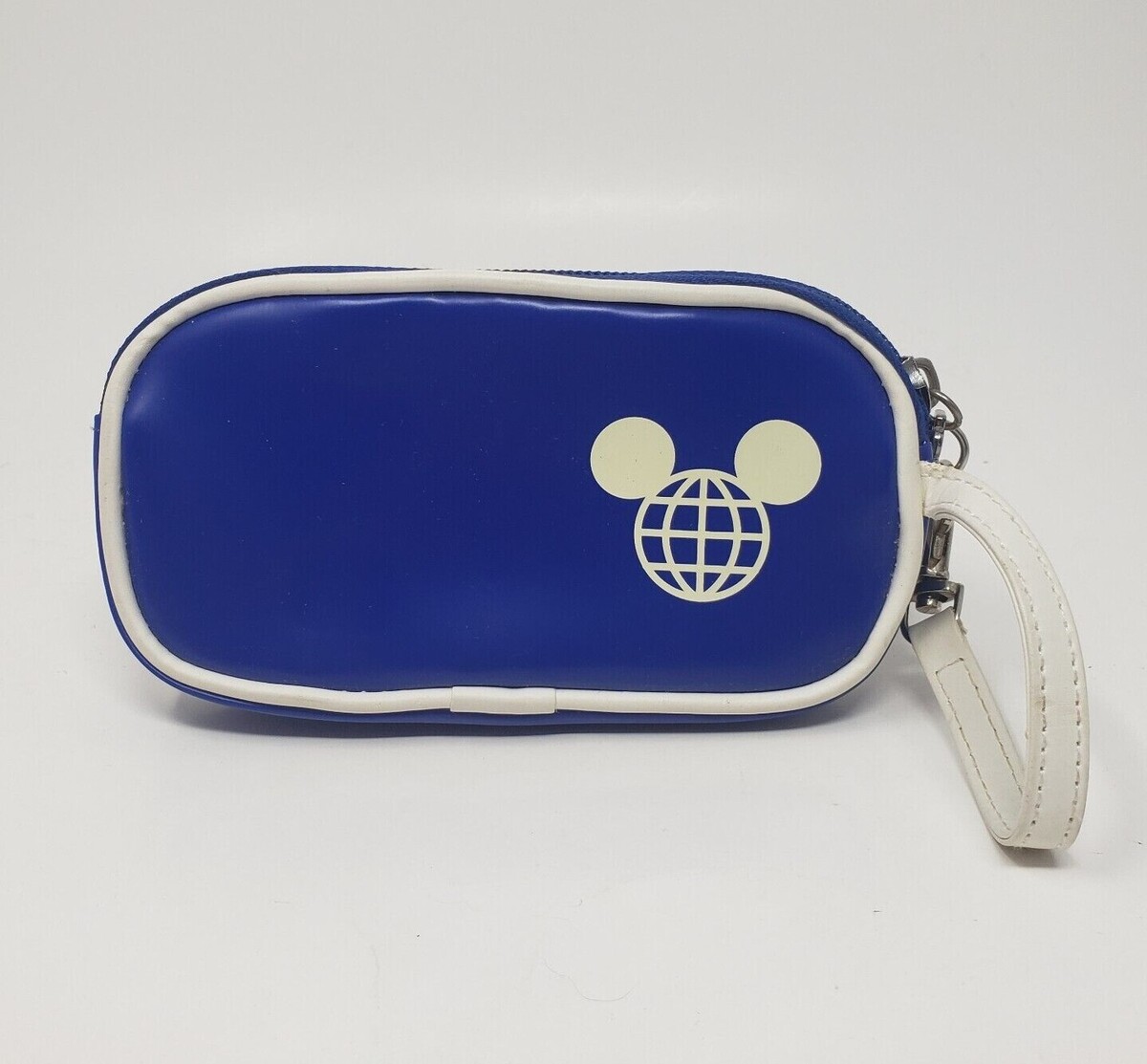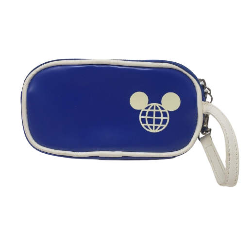 VINTAGE DISNEY EPCOT BLUE + WHITE ZIPPERED SMALL COIN PURSE MINI BAG W/ STRAP