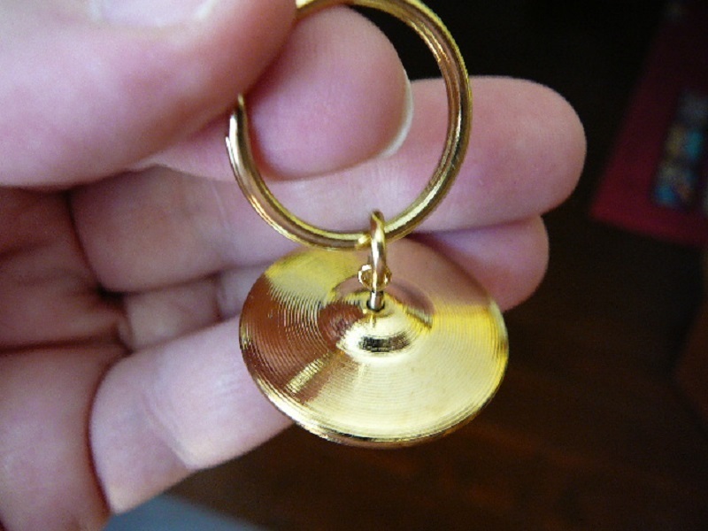 (M-316-I) Miniature CYMBAL (1" diameter) replica, made into a key chain (sturdy brass key ring).