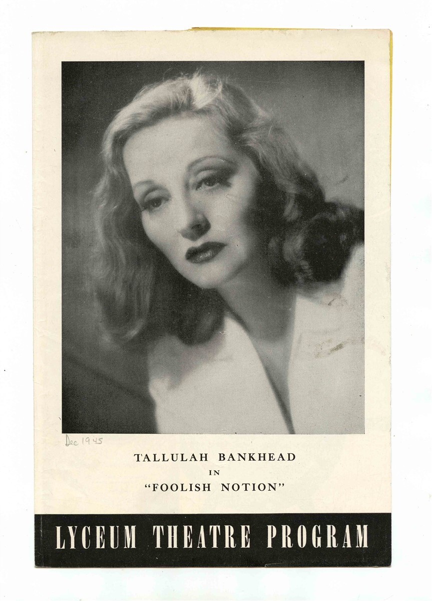 There are 2 items in this lot. Foolish Notion Lyceum Theatre Program Flyer, starring Tallulah Bankhead . From Minneapolis MN in 1945