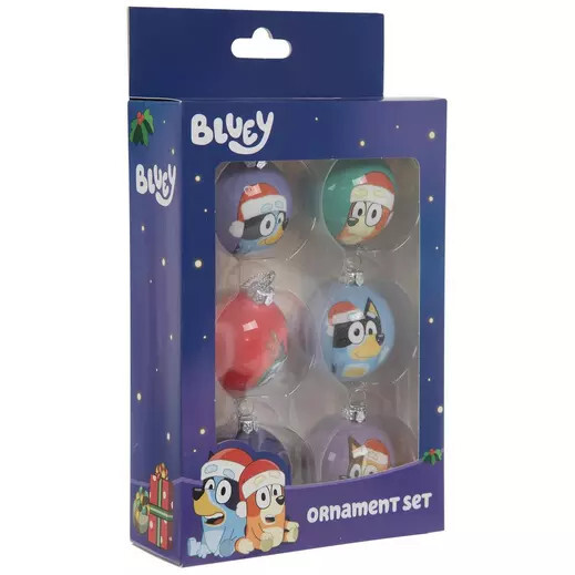 Celebrate the season with your favorite cartoon characters! Bluey Mini Ball Ornament Set comes with six small ornaments that feature different Bluey characters that stand out against a colored background. Display them with their silver strings to add a fun touch to your mini Christmas tree!