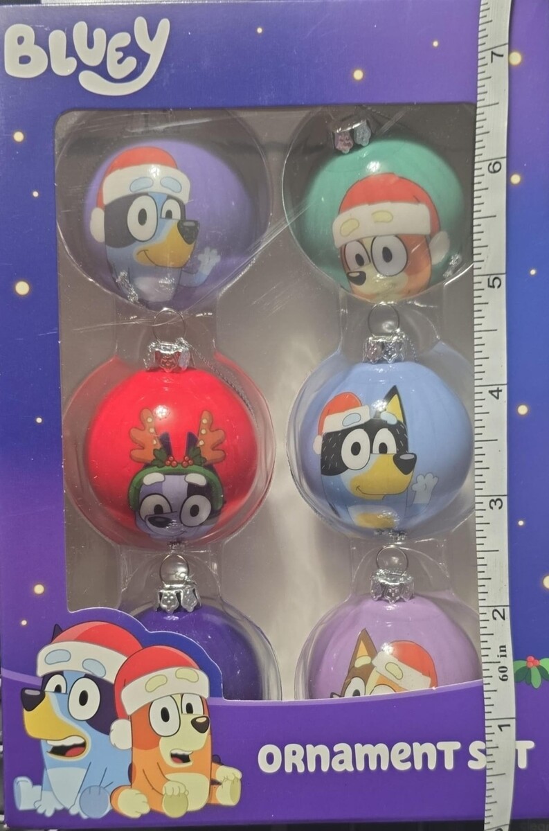 Ruz Bluey Bingo Mini Balls Christmas Ornament Set 6 Count Multicolor