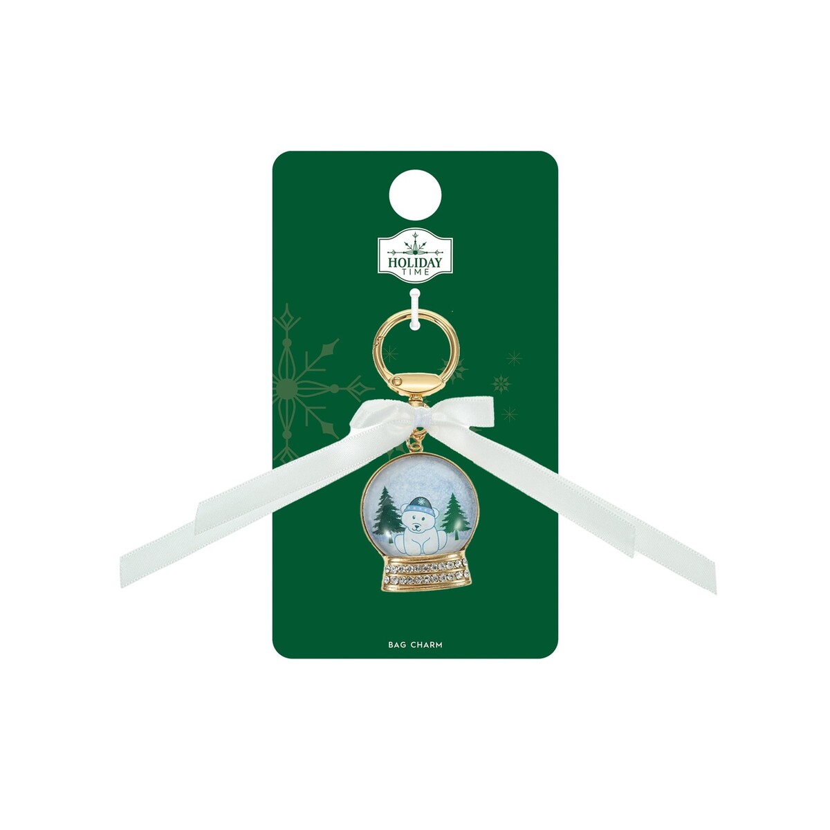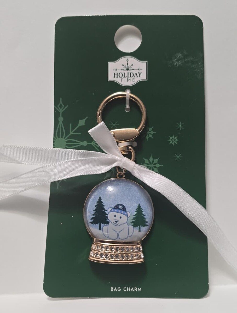 Holiday Time Embellished Snow Globe Bag Charm keychain 1 Piece