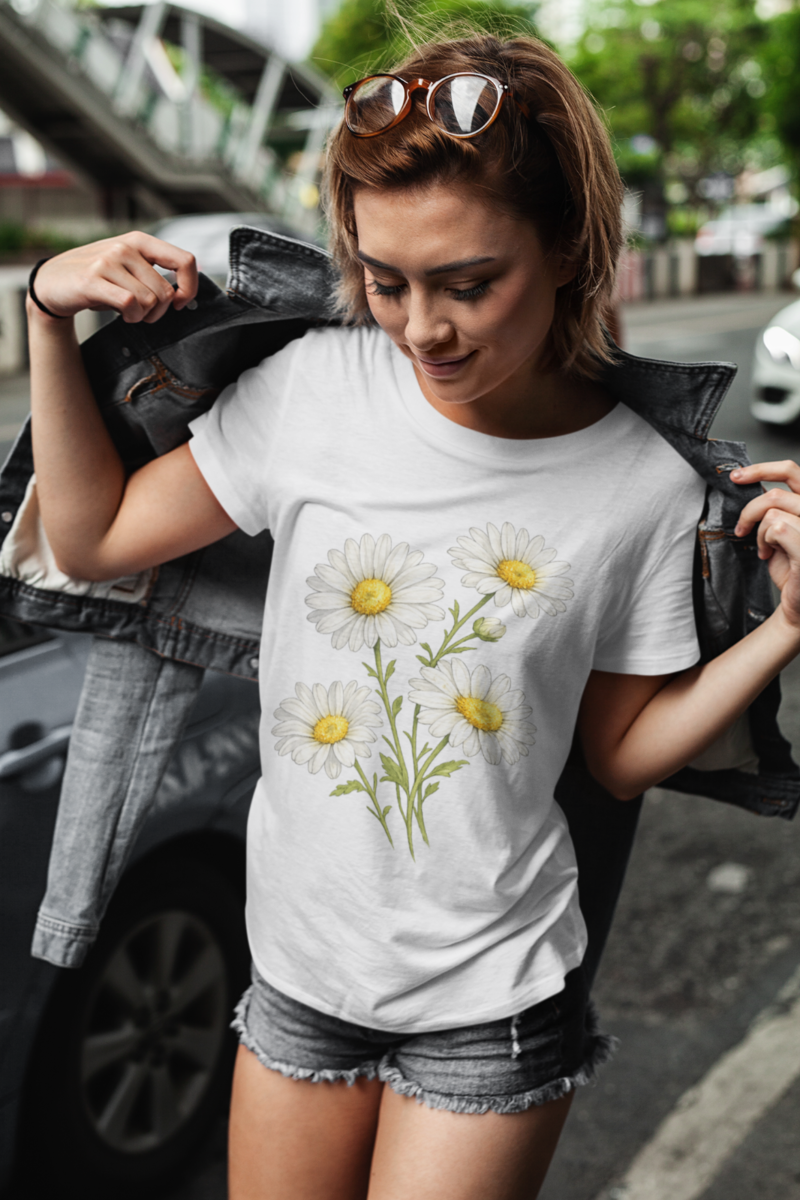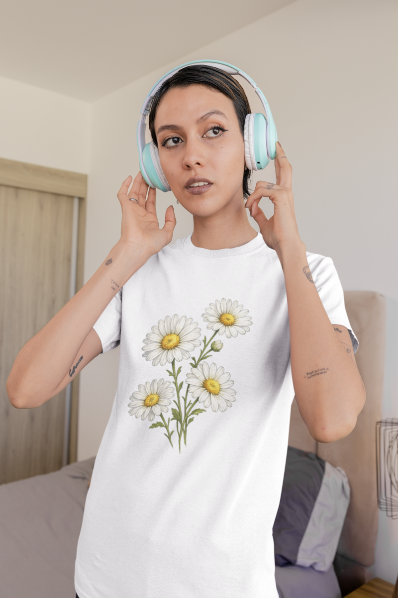 Fresh, soft, and effortlessly stylish, this watercolor daisy t-shirt features a delicate floral design with a hand-painted watercolor look. The minimalist daisy artwork makes this tee perfect for everyday wear, layering, or gifting. A timeless floral shirt that works year-round.