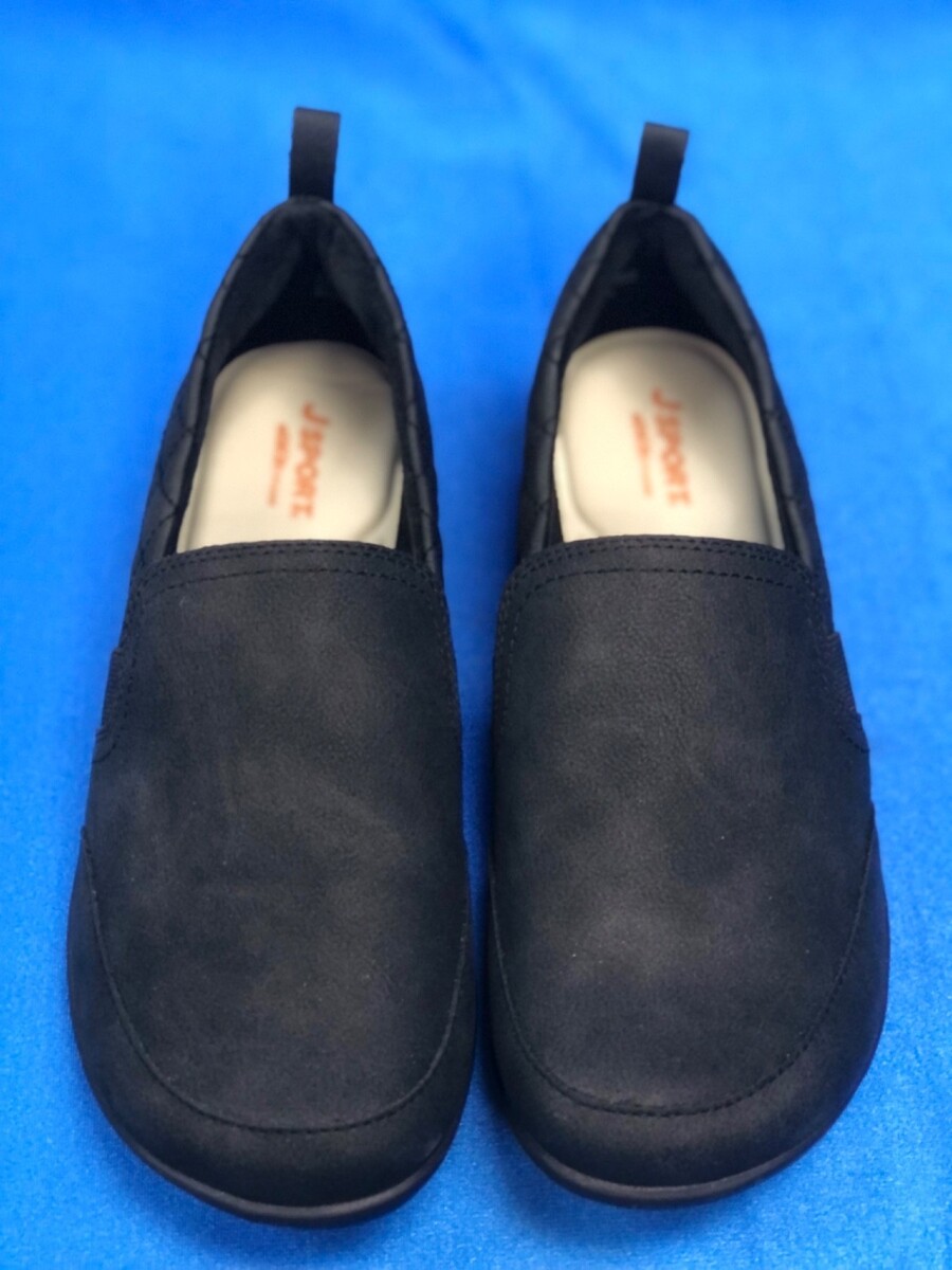 The JSport Lisa Women's Black Slip-On Flats by Jambu are a stylish and comfortable option for casual occasions. These flats feature a round toe, slip-on closure, and faux fur lining for added comfort. The rubber outsole provides durability and cushioning for all-day wear, making them perfect for summer, fall, and spring. The black color and logo accents give them a sleek and versatile look that can be worn in various outdoor or city settings. With a standard shoe width and foam insole, these flats offer a cozy and practical choice for women in size 6.5.