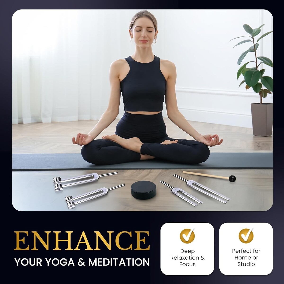 Healing Tuning Fork Set (128Hz, 136.1Hz, 256Hz, 528Hz) Yoga Wellness and Balance