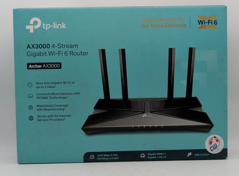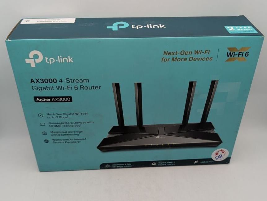 TPLink Archer AX3000 Dual Band WiFi 6 Gigabit Wireless Router MU-MIMO 4 Antennas