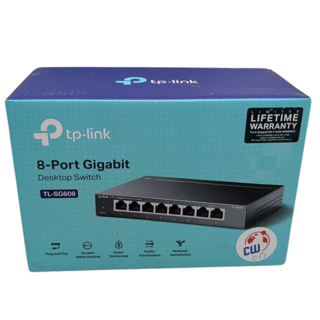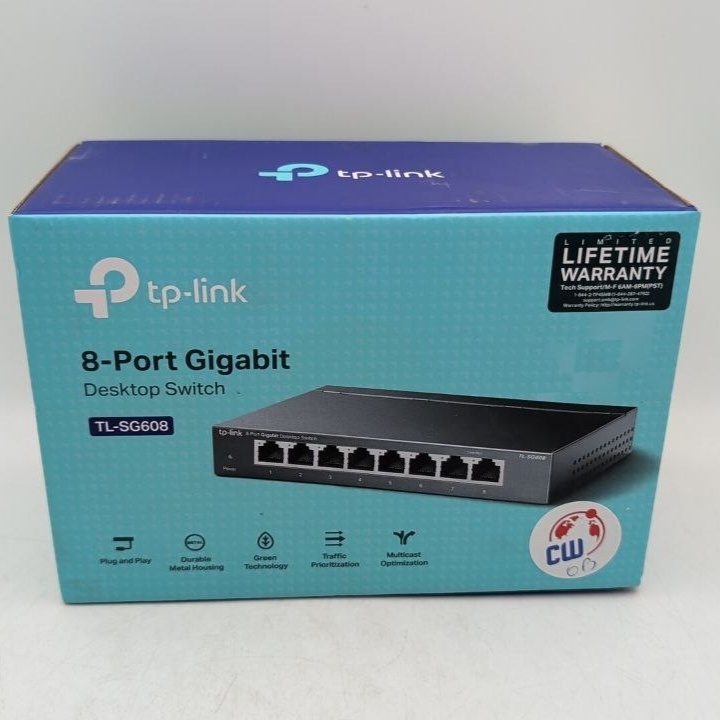 Item includes: Please note: This item includes 1x TP-Link TL-SG608 8-Port Gigabit Desktop Network Switch and ? As Pictured. No Power Adapter, mounting hardware, or other accessories are included.